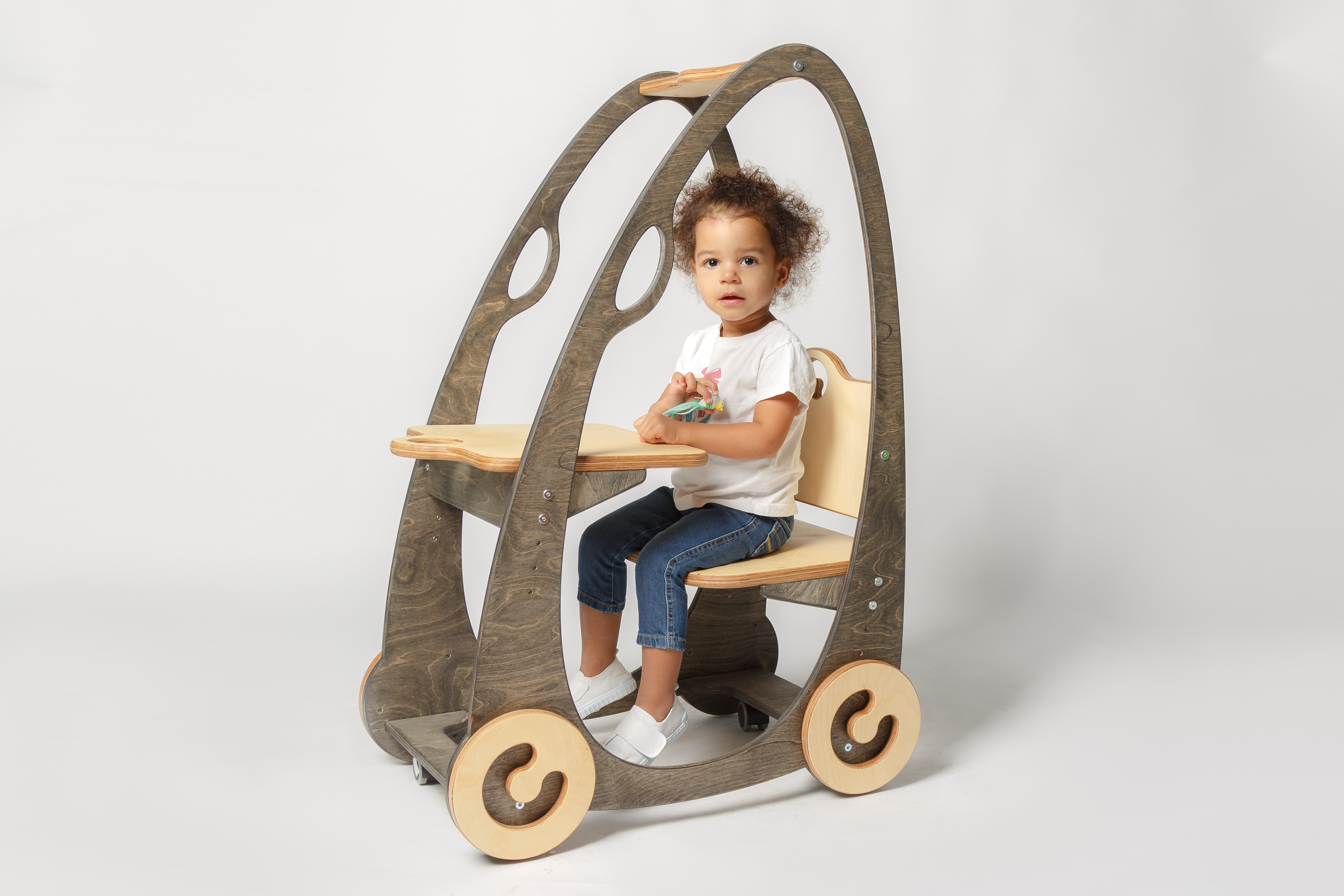 Мобильное рабочее место в виде автомобиля (детский стол и стул) с возможностью установки на крыше декоративного элемента (корона, мигалка). В данном комплекте детской мебели стола со стулом можно регулировать высоту сидения и столешницы в диапазоне не менее трех ростовых групп 0-3. Также его можно дооснастить дополнительным оборудованием для слабовидящих и слабослышащих детей.
