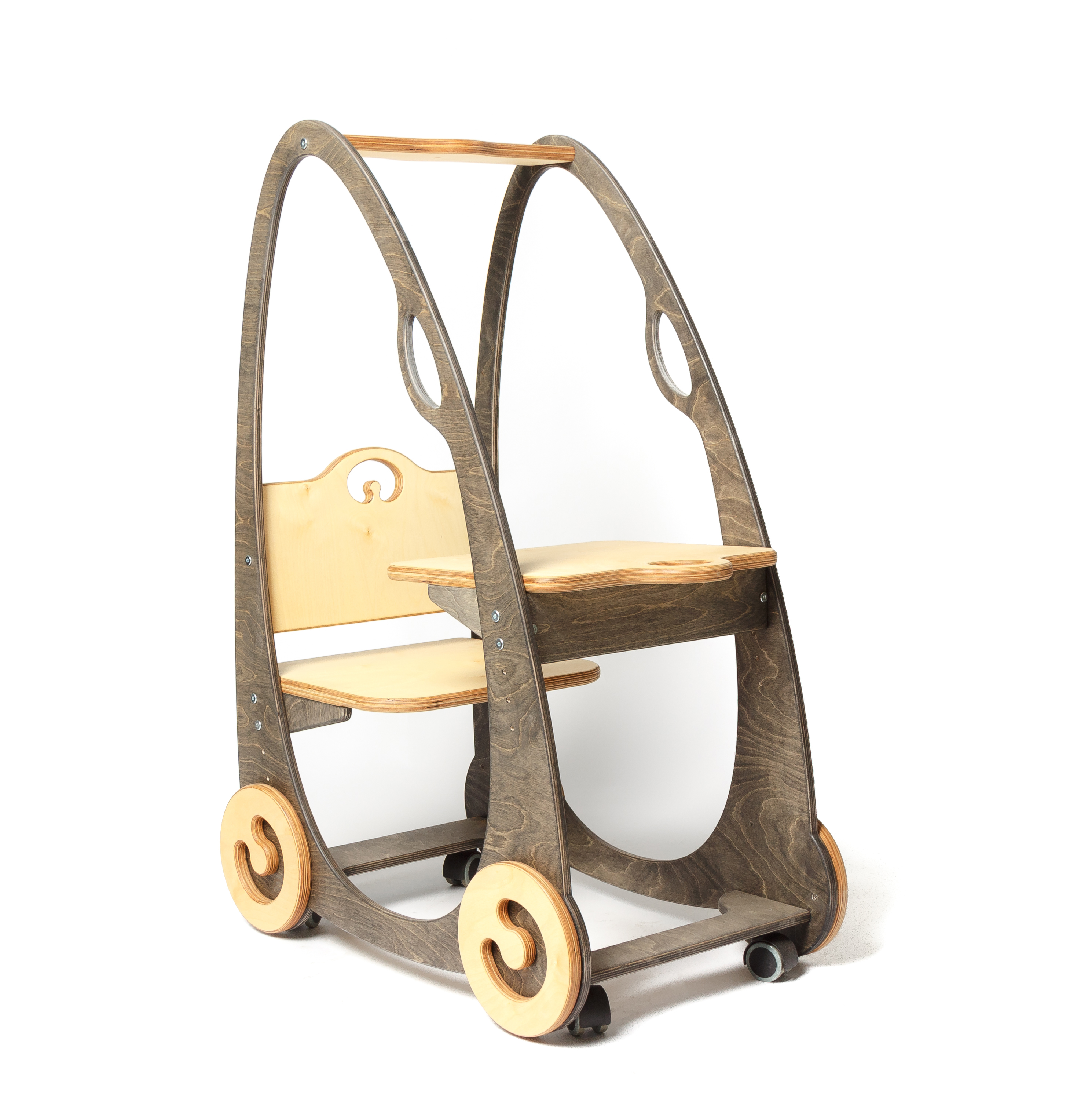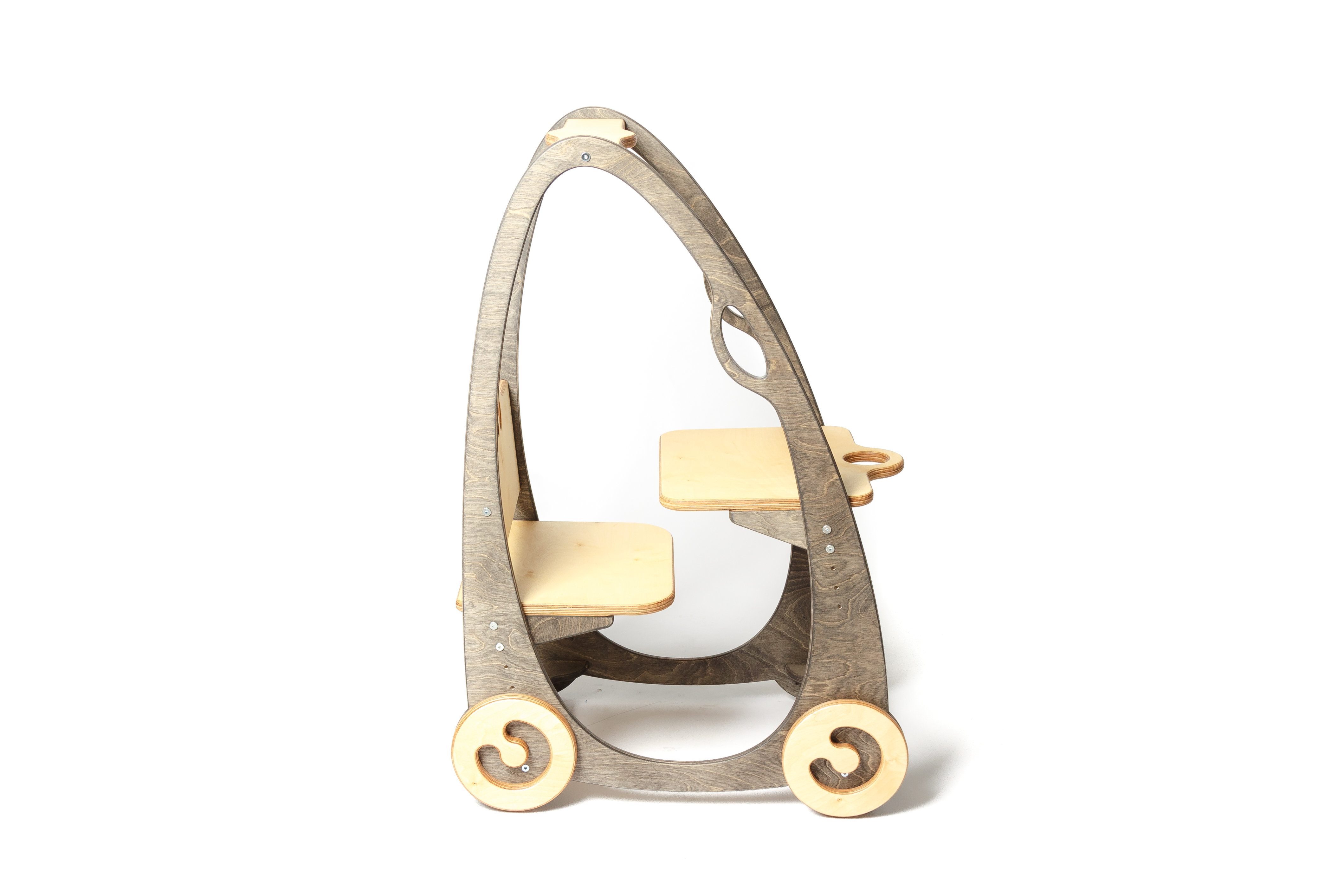 Изготовлено из березовой фанеры толщиной 15 мм. Допустимая нагрузка на сидение - до 40кг. Покрытие - датское масло Decking oil 60 il natural, или эмаль (белая черная), или лак по согласованию с заказчиком. Комплектуется 4 колесами, сконструированными таким образом, чтобы предотвратить излишнее движение ребенка.