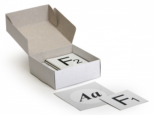 Набор включает 21 картонную карточку на магнитах, квадратной формы с условными обозначениями генотипов, гамет и прочими вспомогательными знаками; а также 6 карточек c желтыми кругами обозначающие семена гороха желтого цвета и 2 карточки с зелеными кругами, обозначающие семена гороха зеленого цвета.