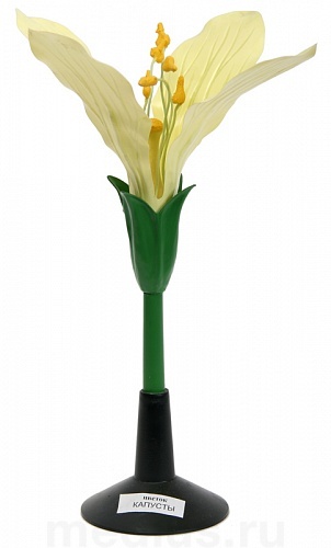 Модель цветка капусты используется для демонстрации при изучении строения цветка, особенностей строения цветка семейства Крестоцветных.