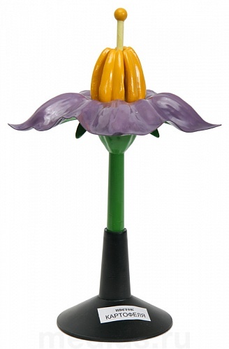 Объемная разборная модель цветка картофеля используется для демонстрации при изучении строения цветка, особенностей строения цветка семейства Пасленовых. Модель представляет собой цветок картофеля, увеличенный в 7 раз.