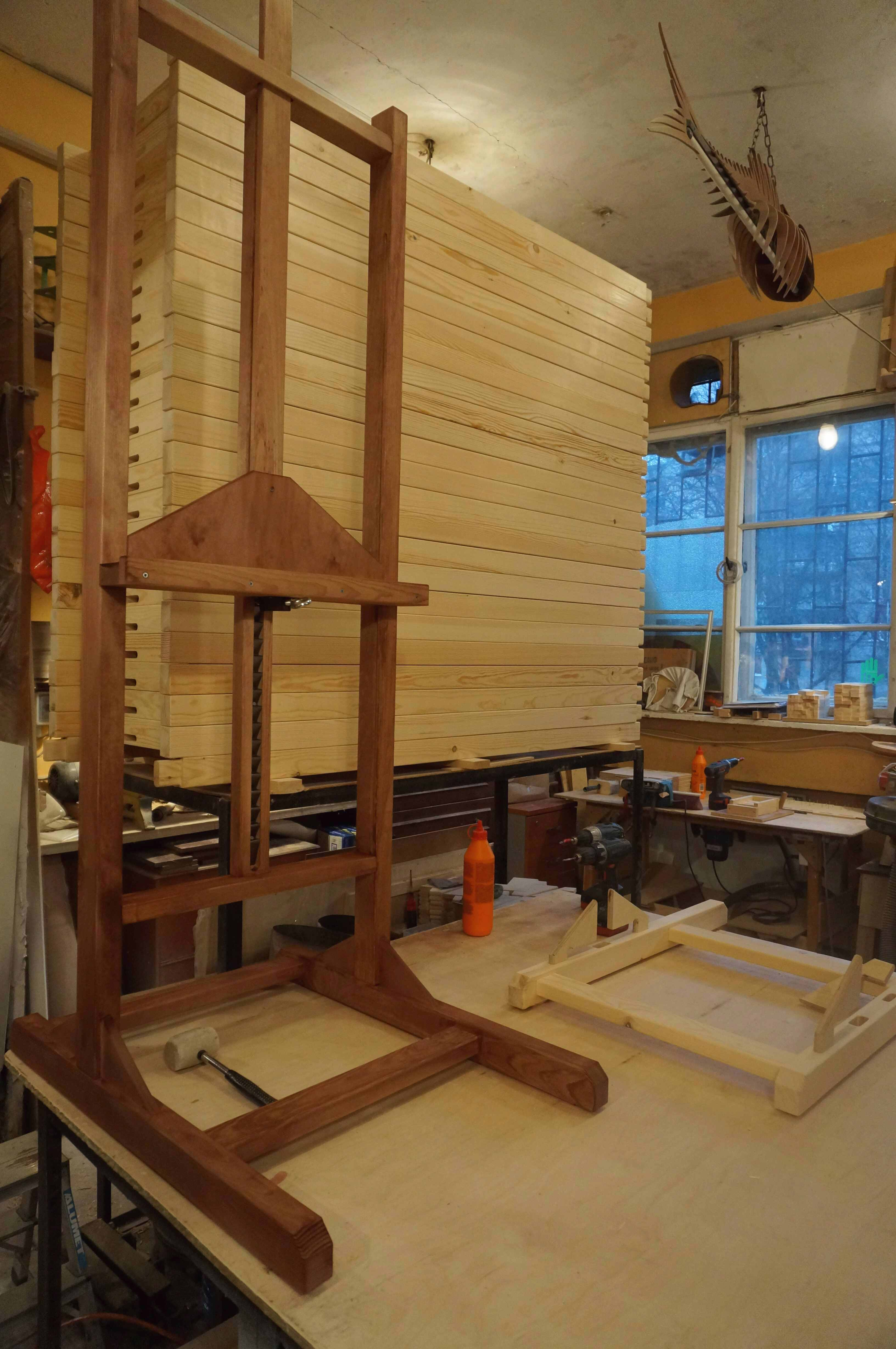 Мольберт изготовлен по чертежам, внесение изменений согласуется с заказчиком.