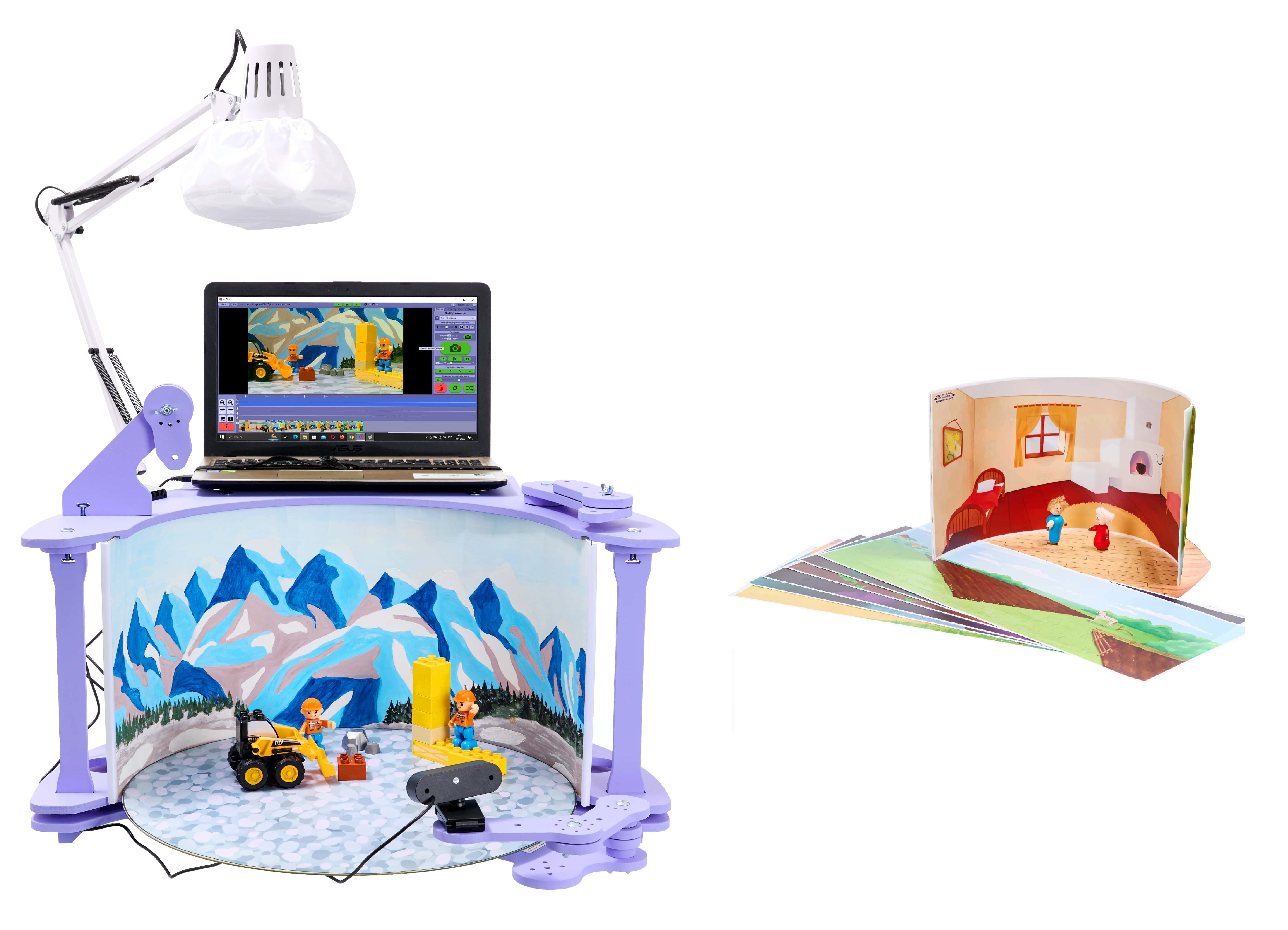 Детская мультстудия «Юный мультипликатор» - комплект для создания мультфильмов, кукольной и Lego анимации, пластилиновой, песочной мультипликации. Набор для кукольной анимации помогает развивать образное мышление, раскрывать творческий потенциал, таланты ребенка. Мультстудия кукольной анимации используется в комплекте с ноутбуком, веб-камерой, фотоаппаратом.