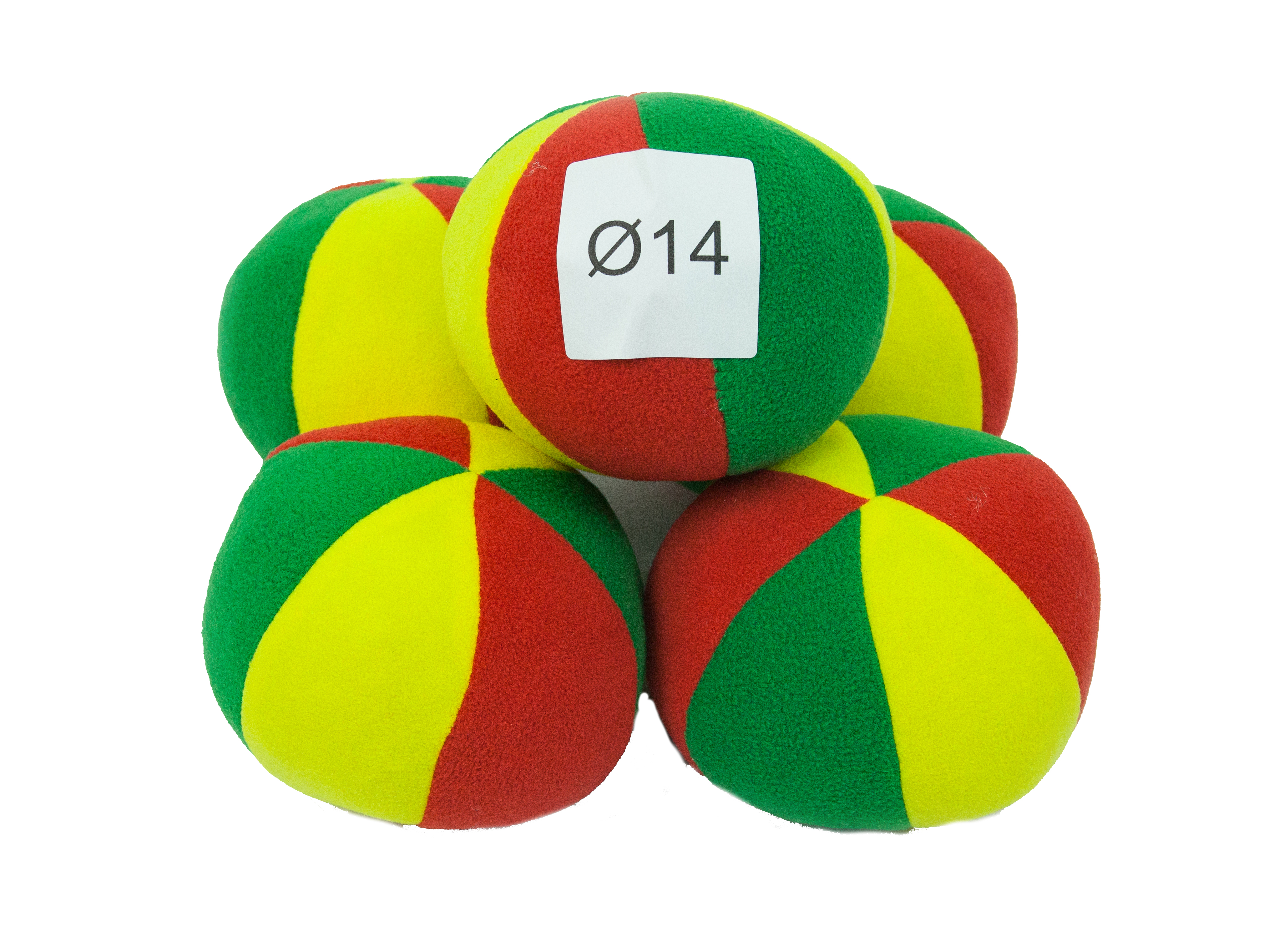 Комплектация:  6 деталей сшитых между собой (3цвета -  красный, желтый, зеленый). Наполнен мячик синтепухом.