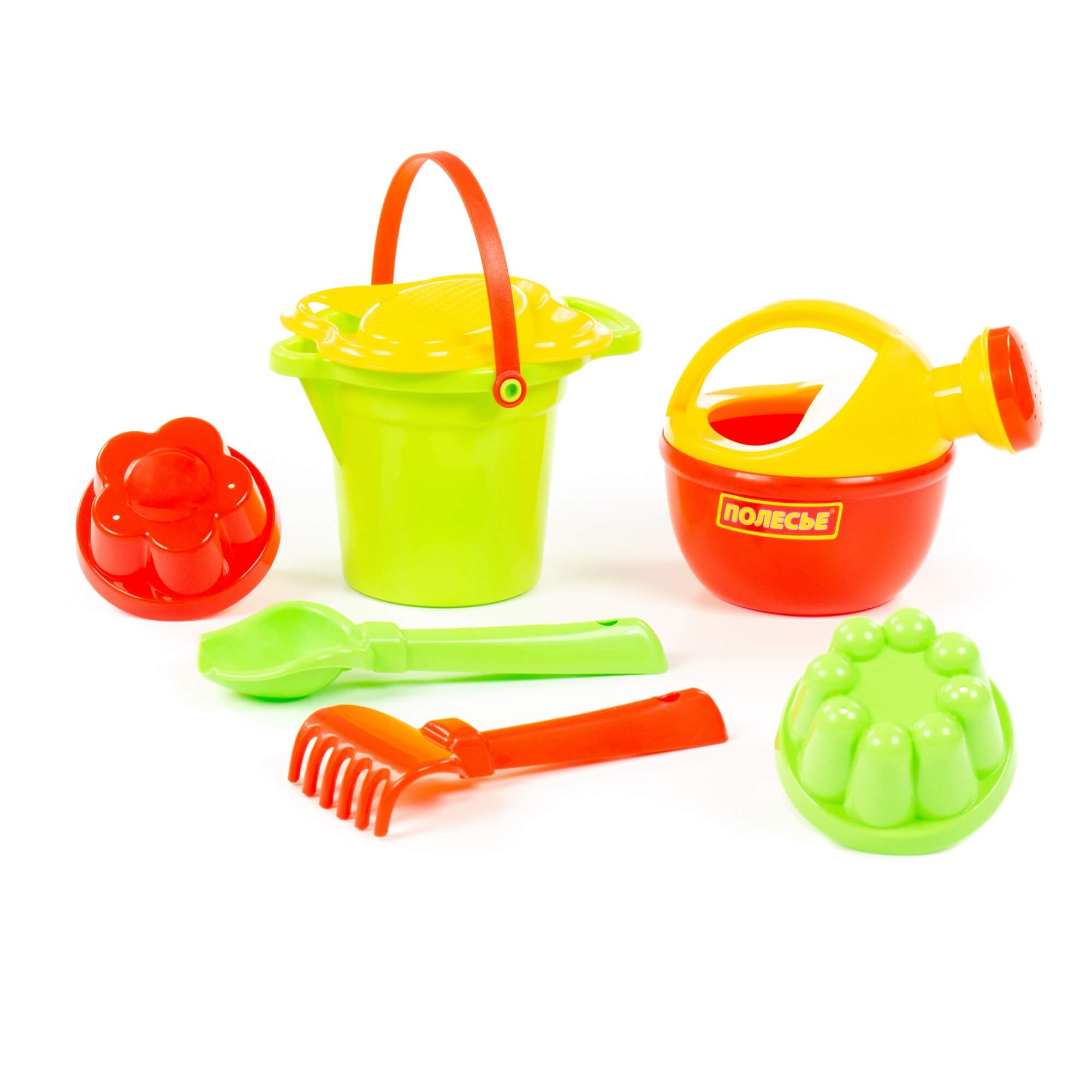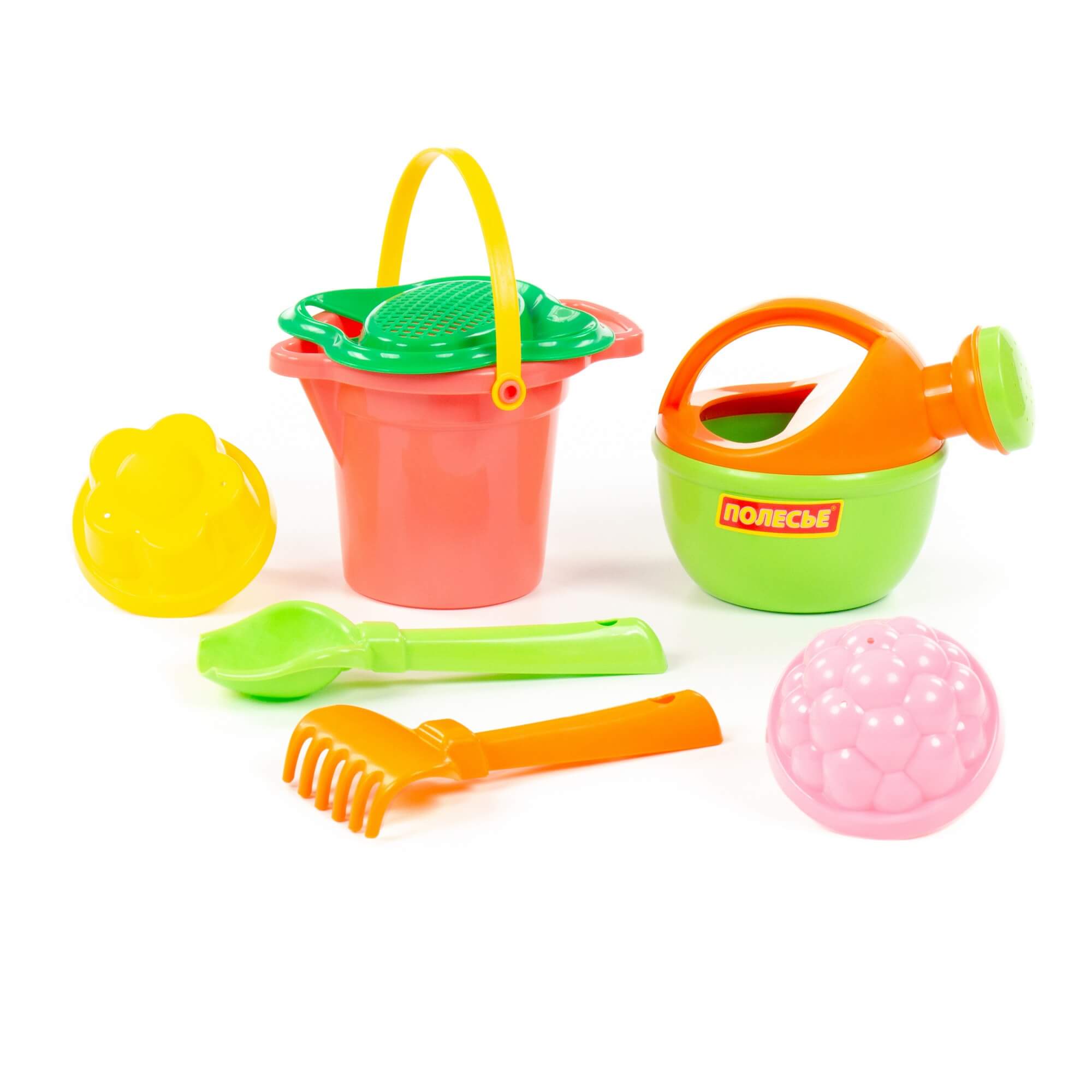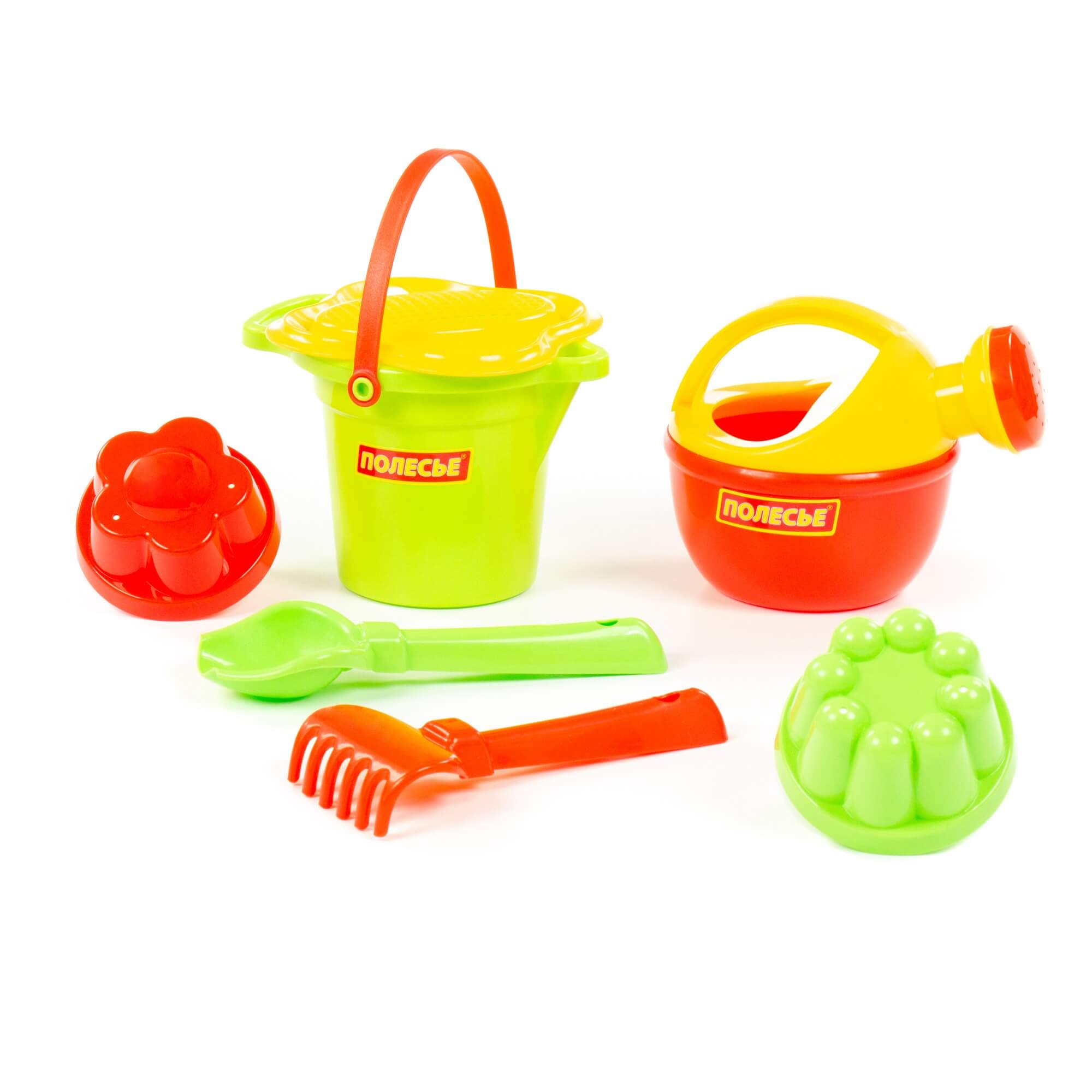 Набор №155: ведро малое с носиком, ситечко-цветок, совок №2, грабельки №2, 2 формочки, лейка малая №4, артикул 4955