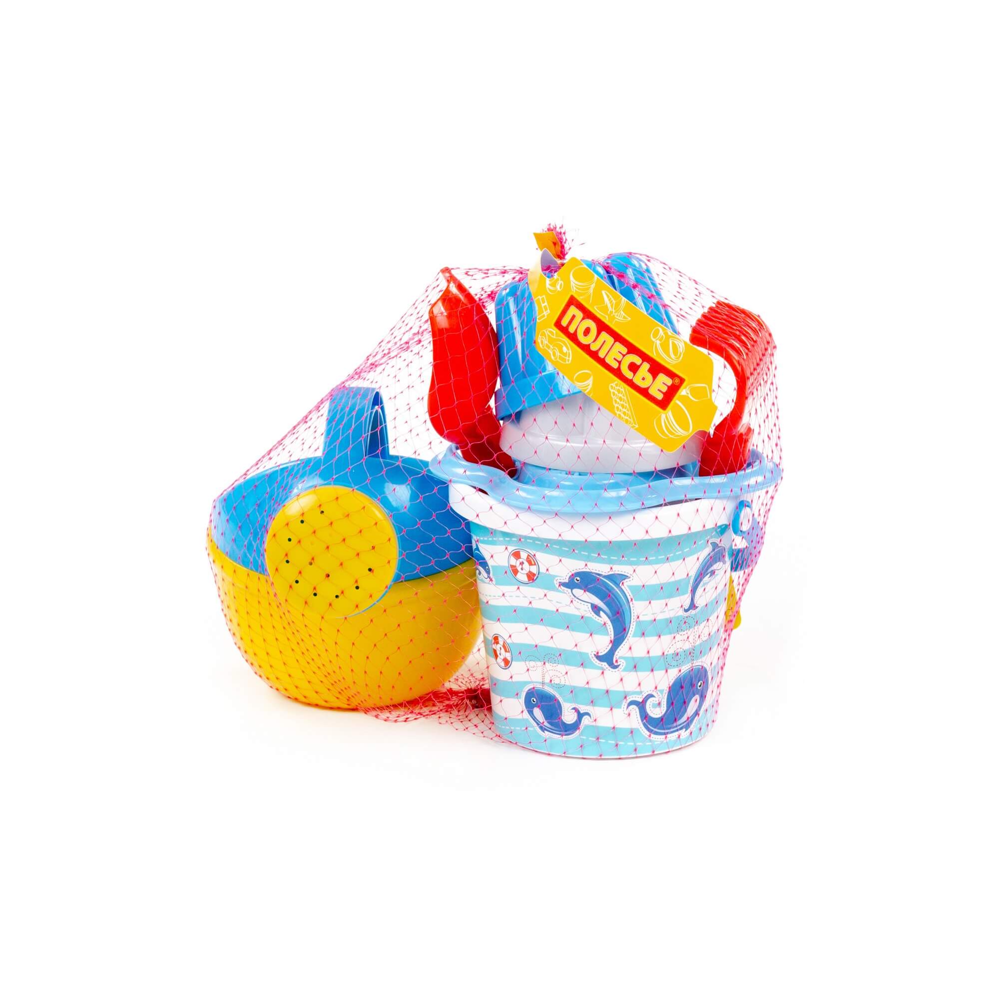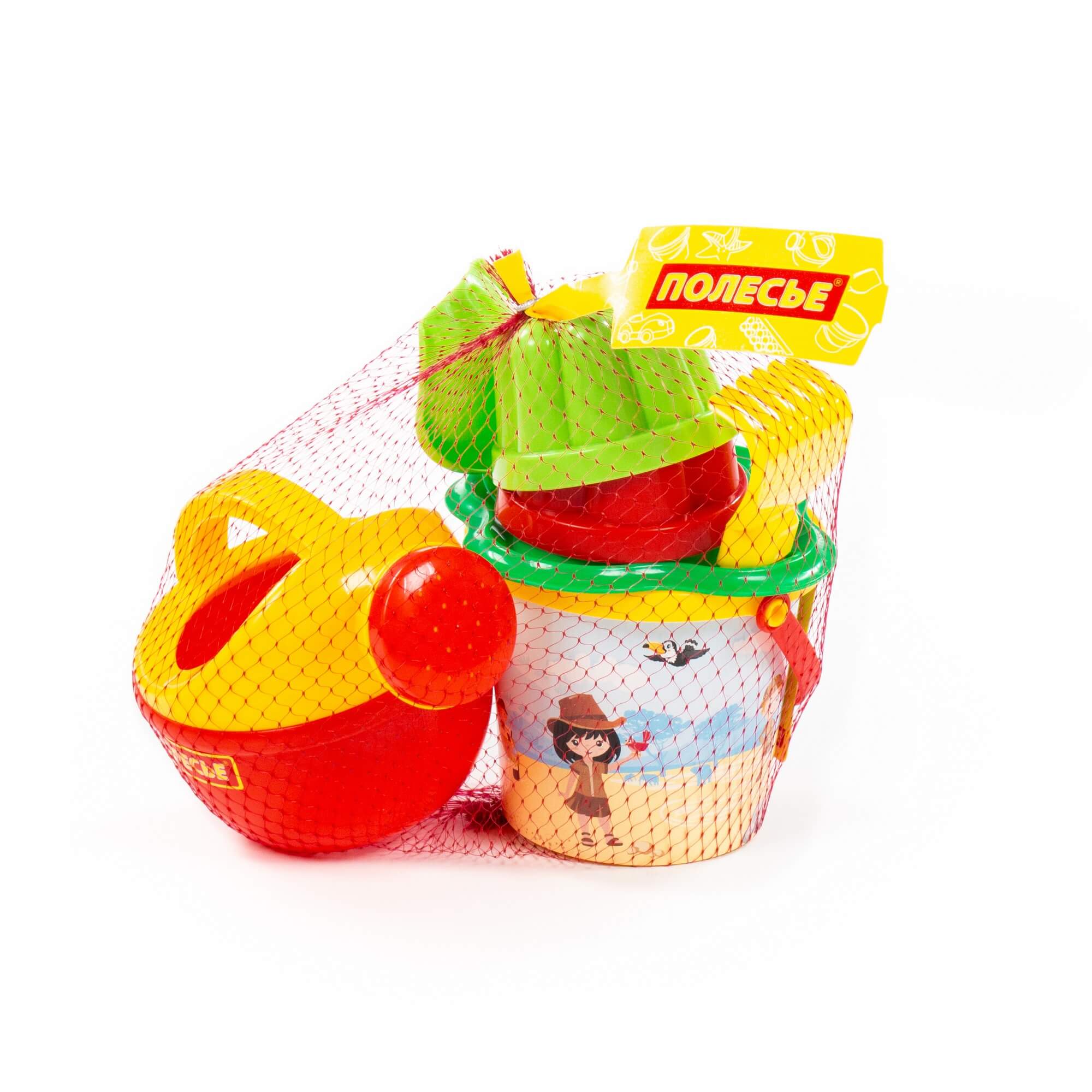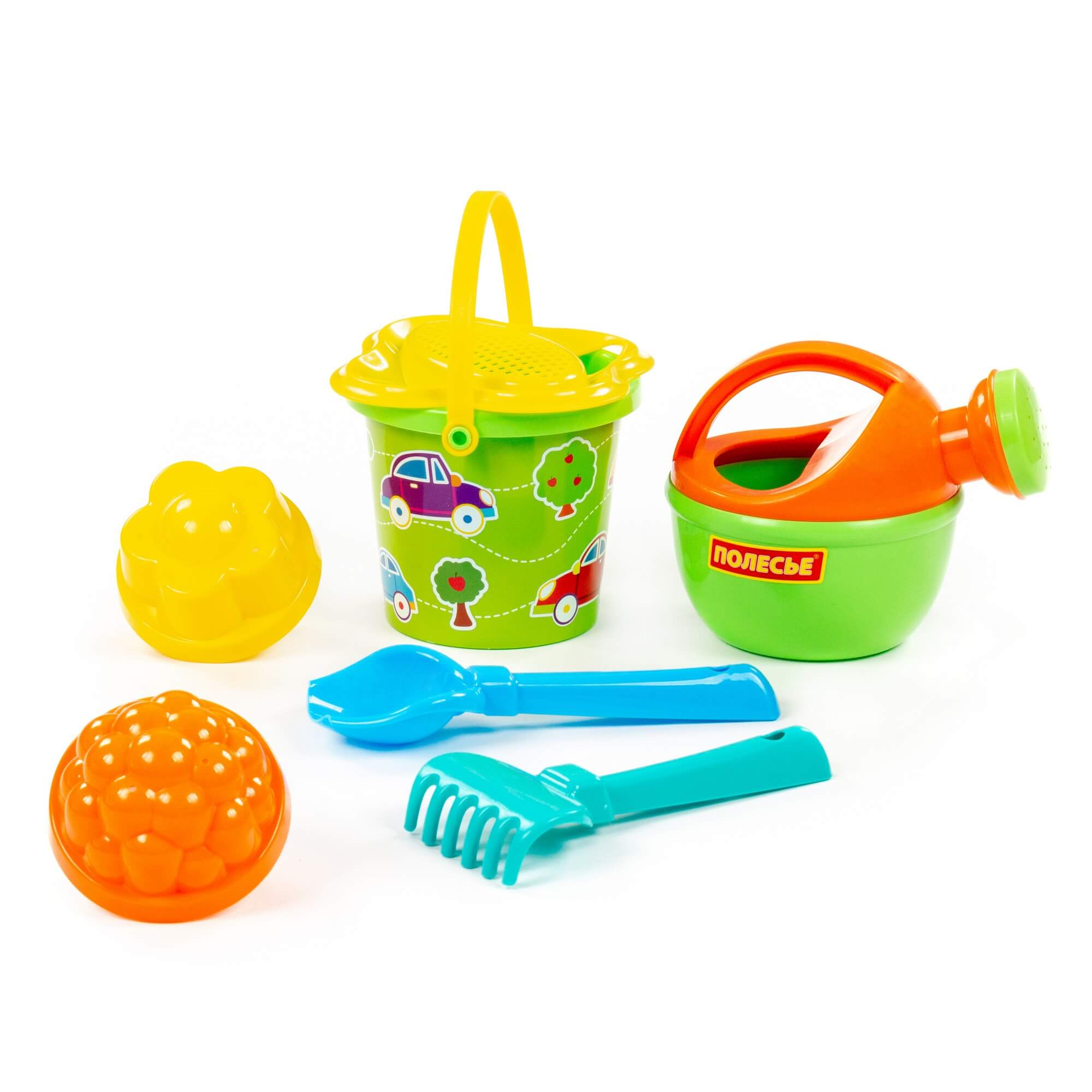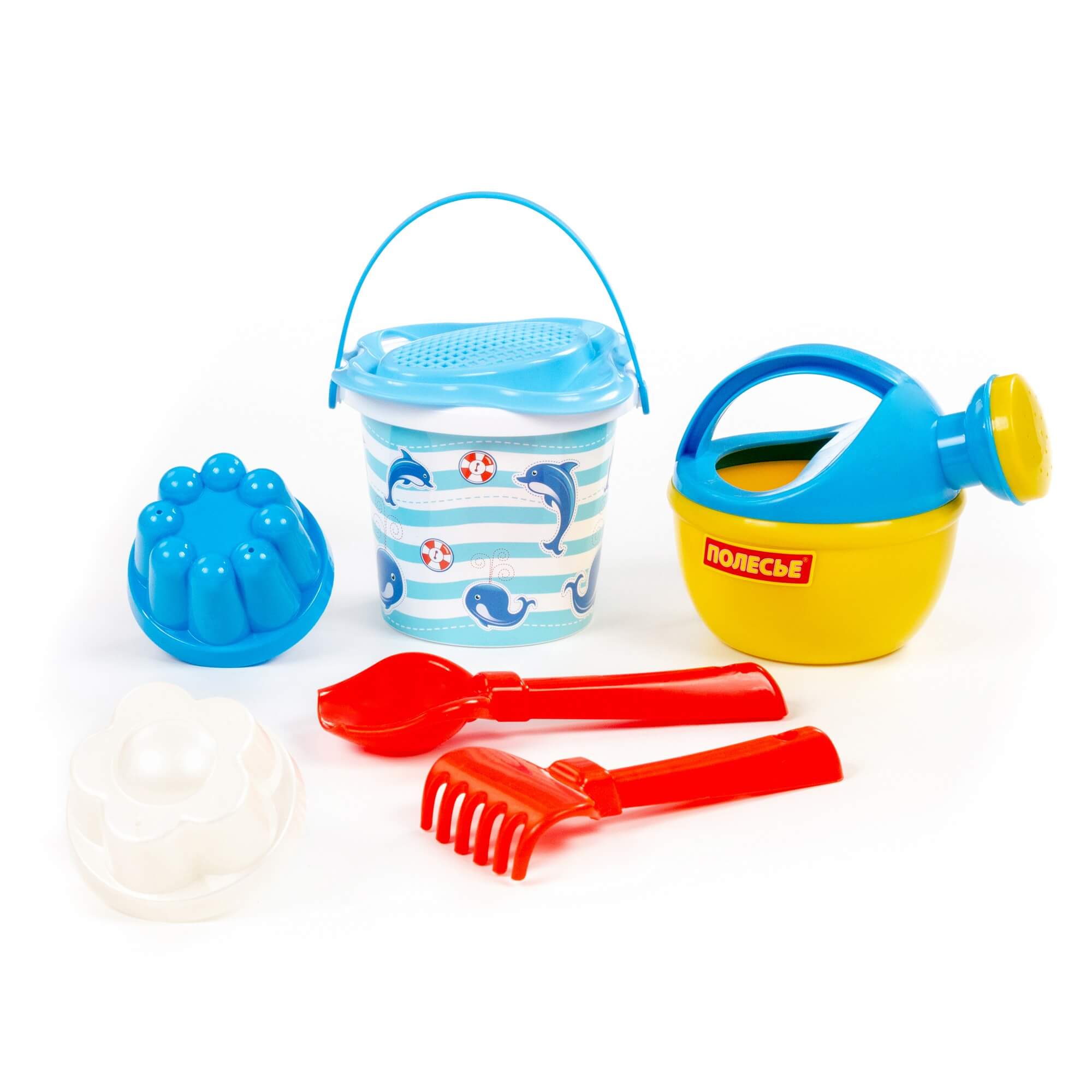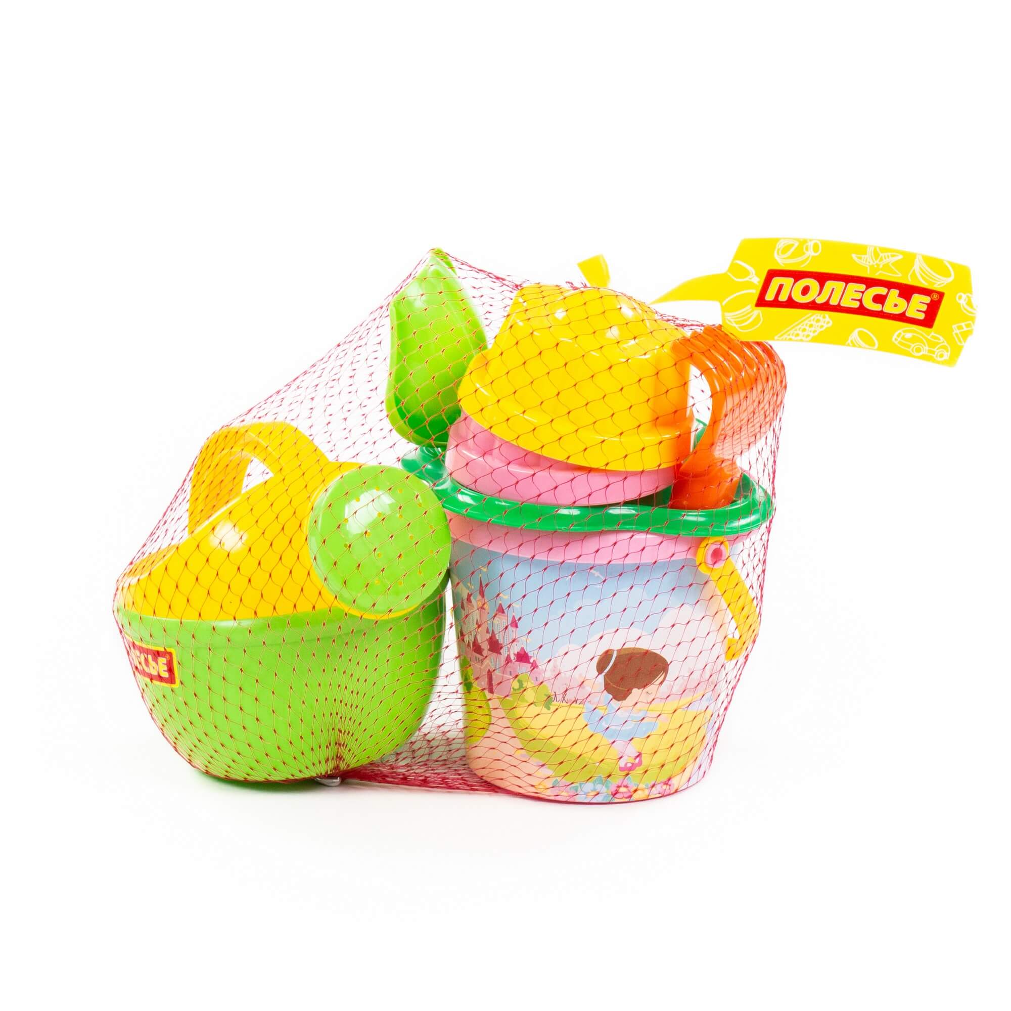 Набор №180: ведро малое с наклейкой, ситечко-цветок, совок №2, грабельки №2, 2 формочки, лейка малая №4, артикул 0597