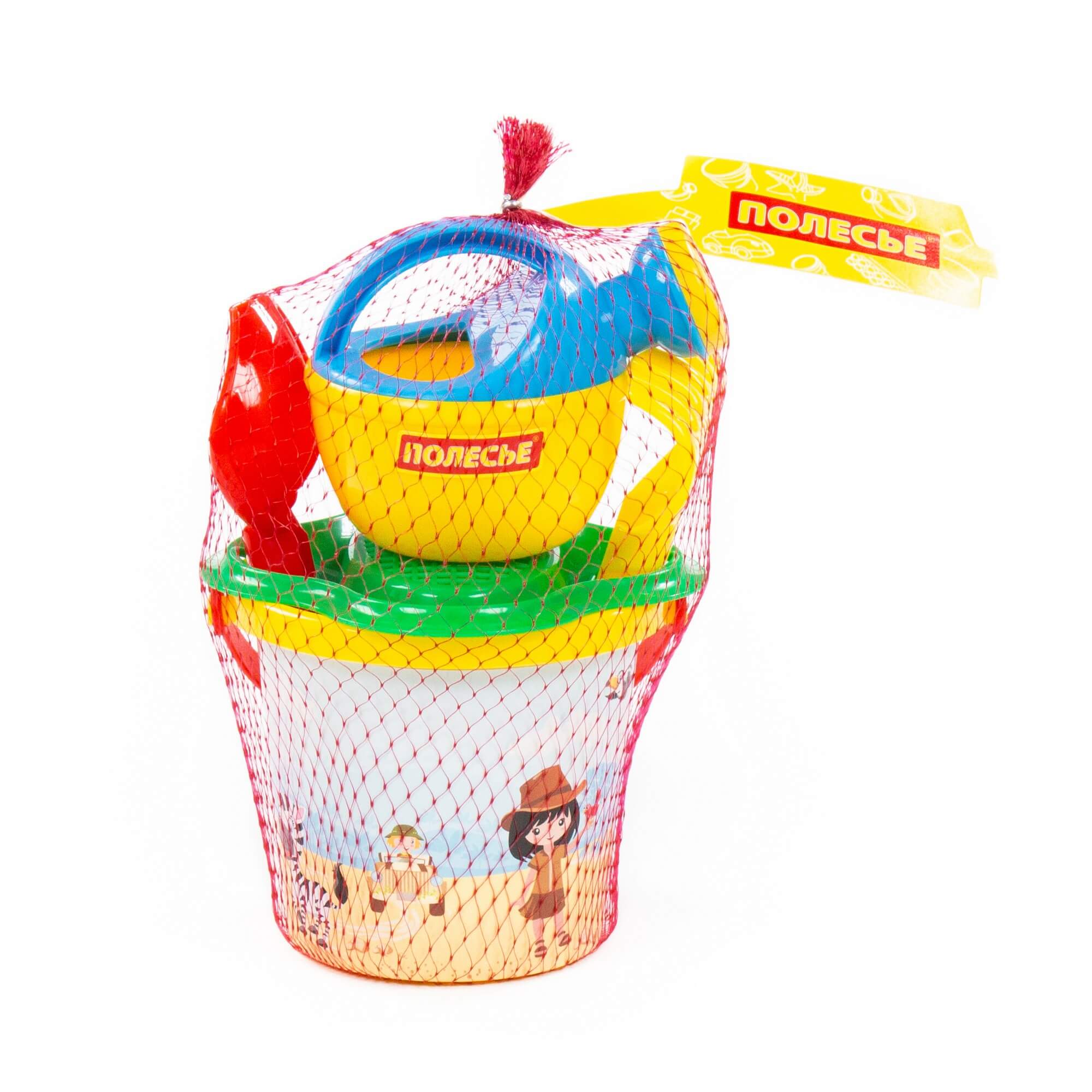 Ведро малое с наклейкой, ситечко-цветок, совок №2, грабельки №2, лейка малая №3. Размер: 132х132х200 мм.
