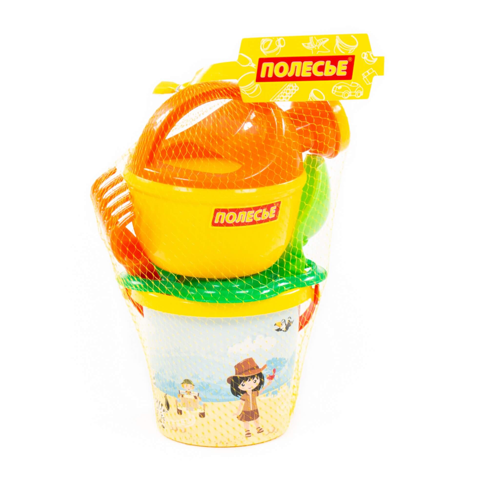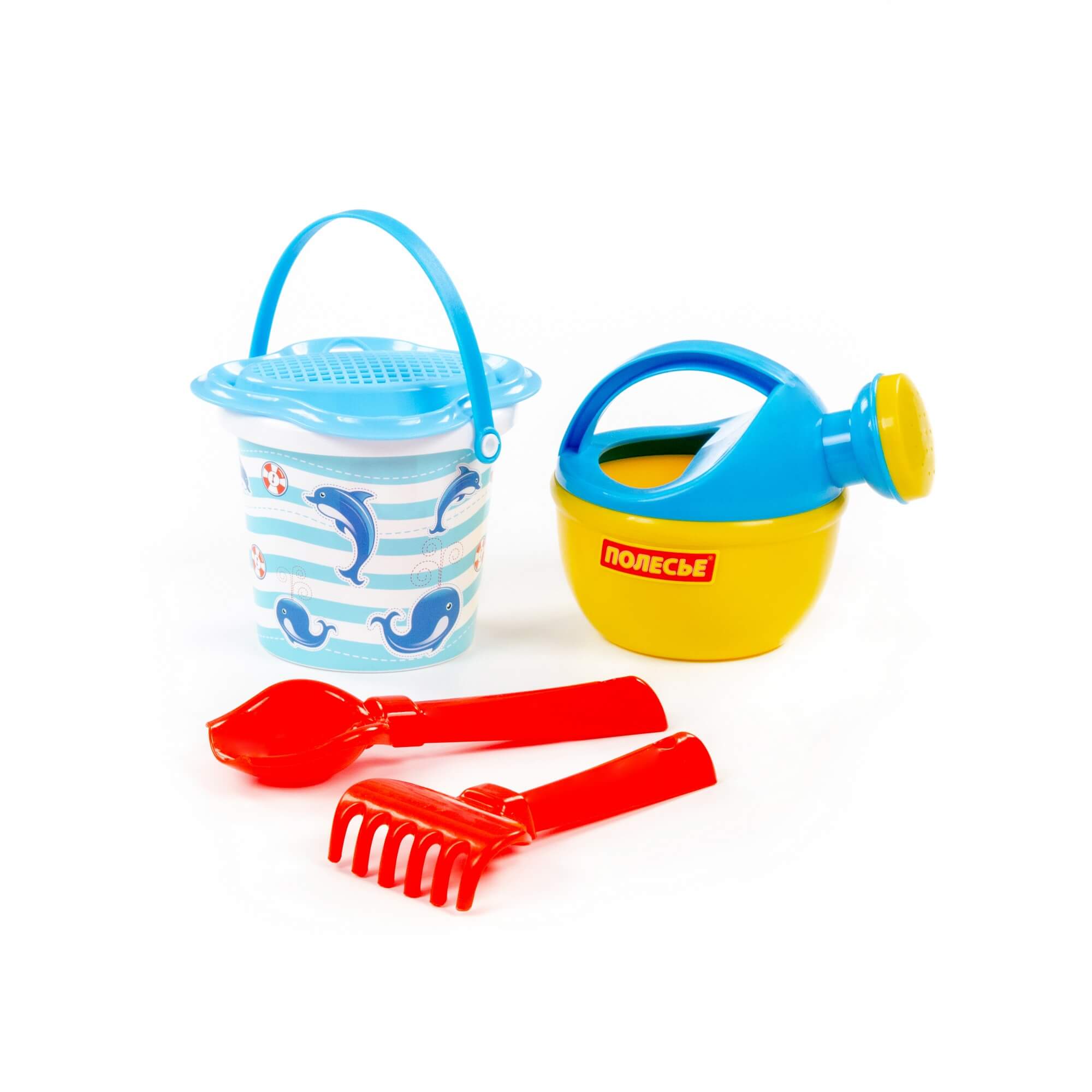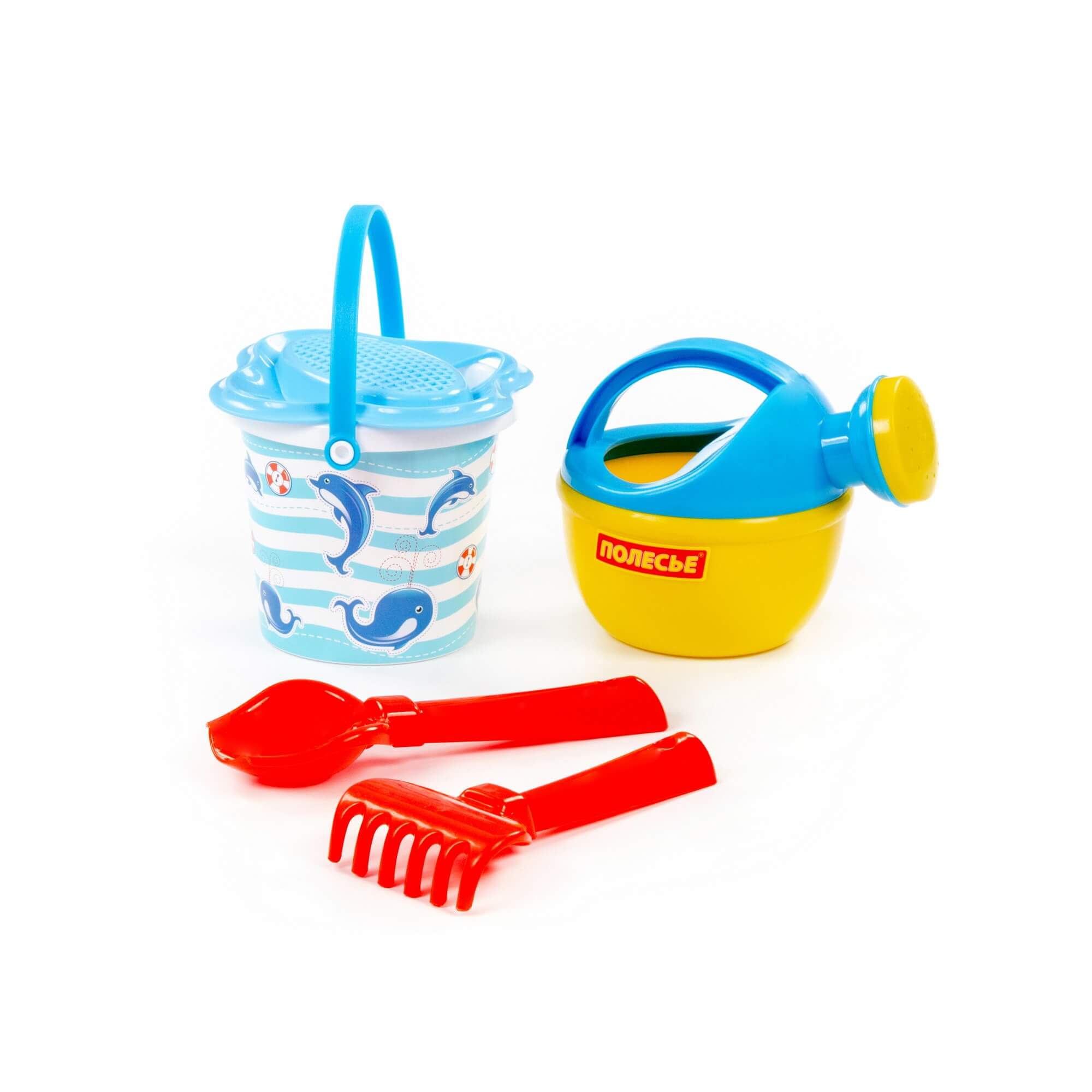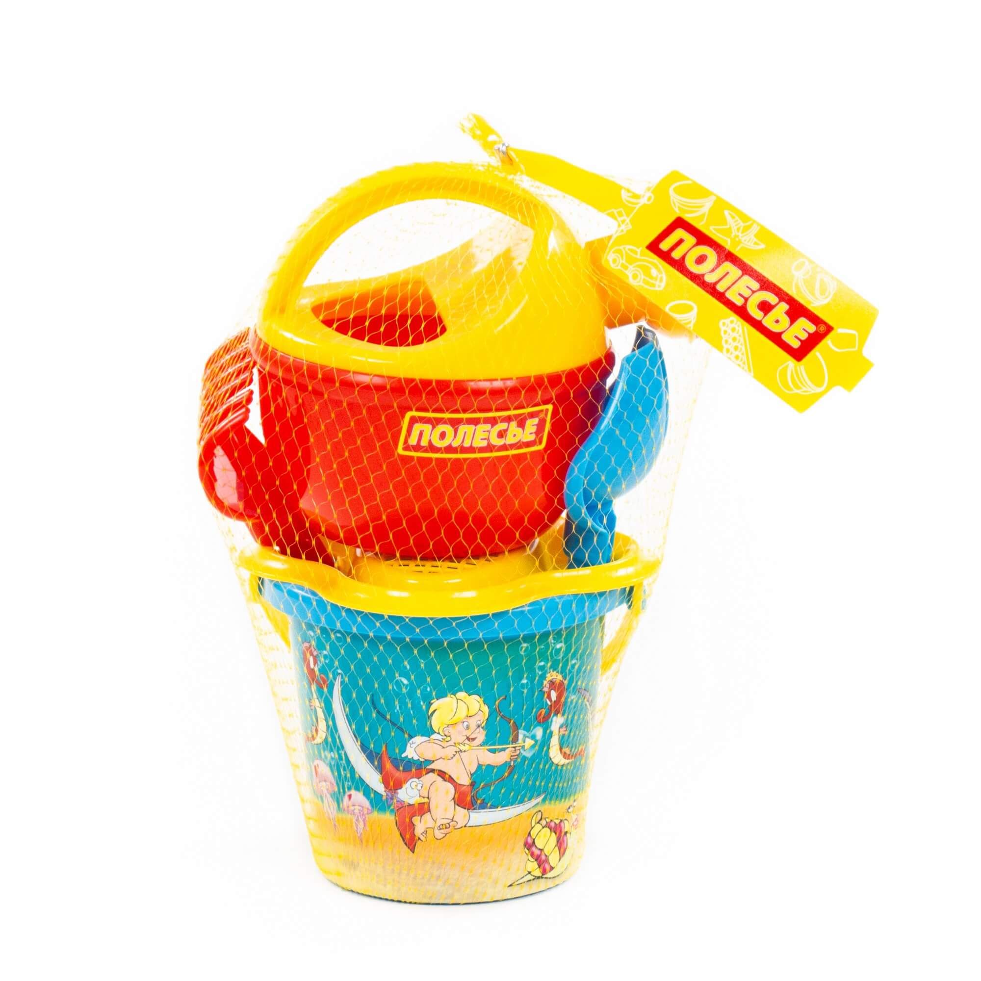 Набор №217: ведро малое с наклейкой, ситечко-цветок, совок №2, грабельки №2, лейка малая №4, артикул 0542