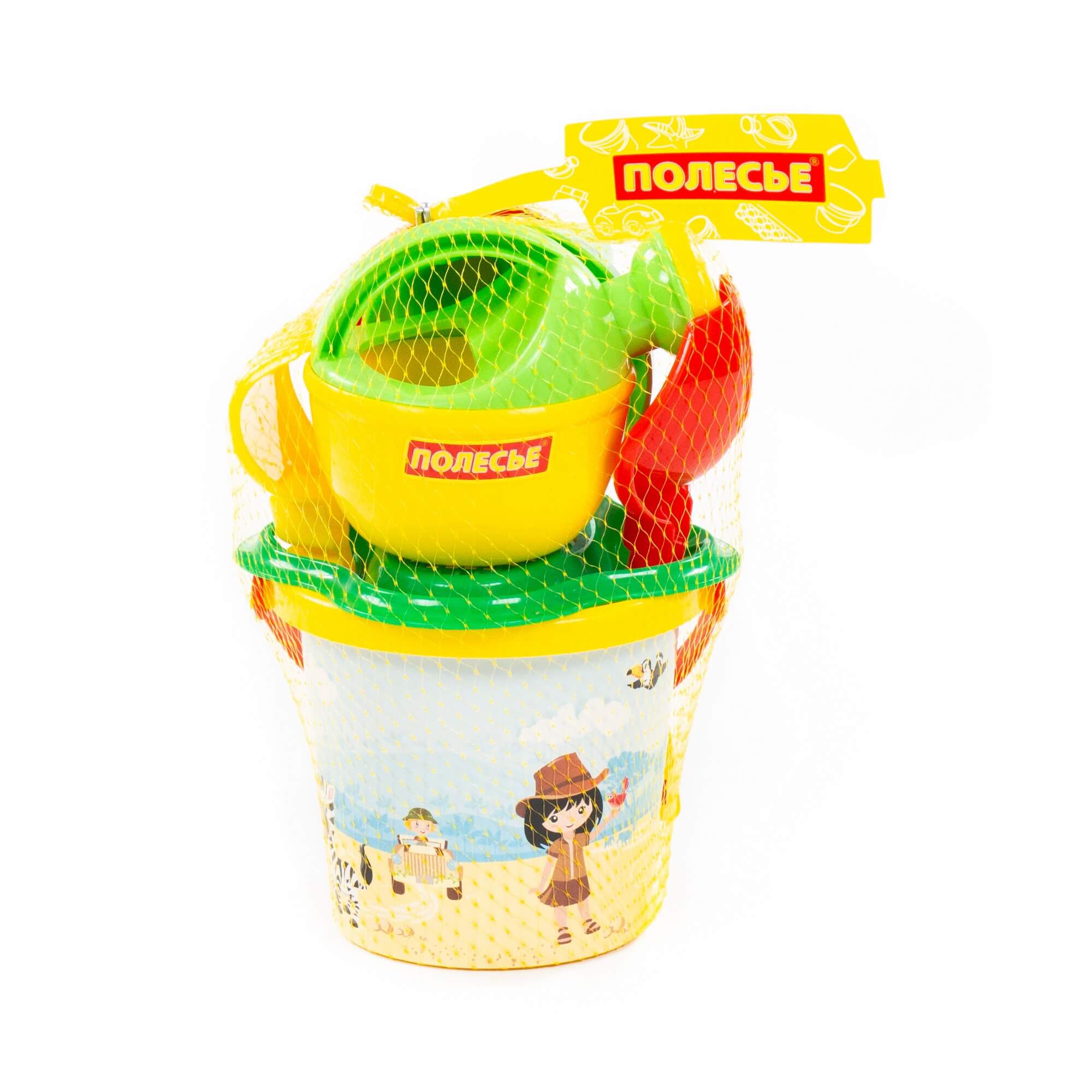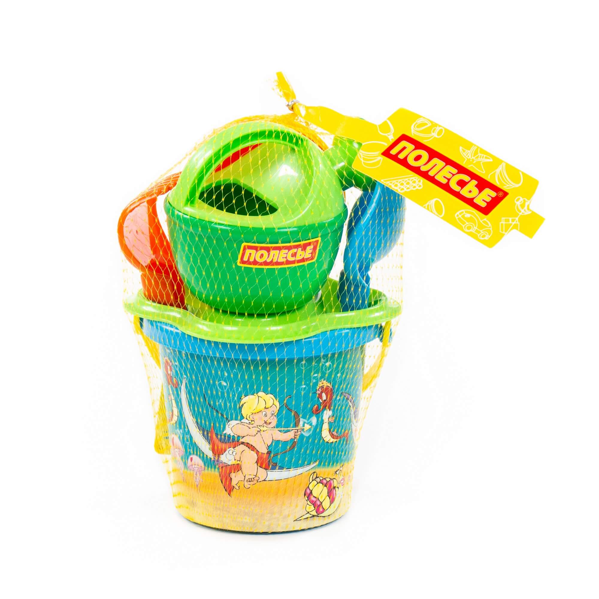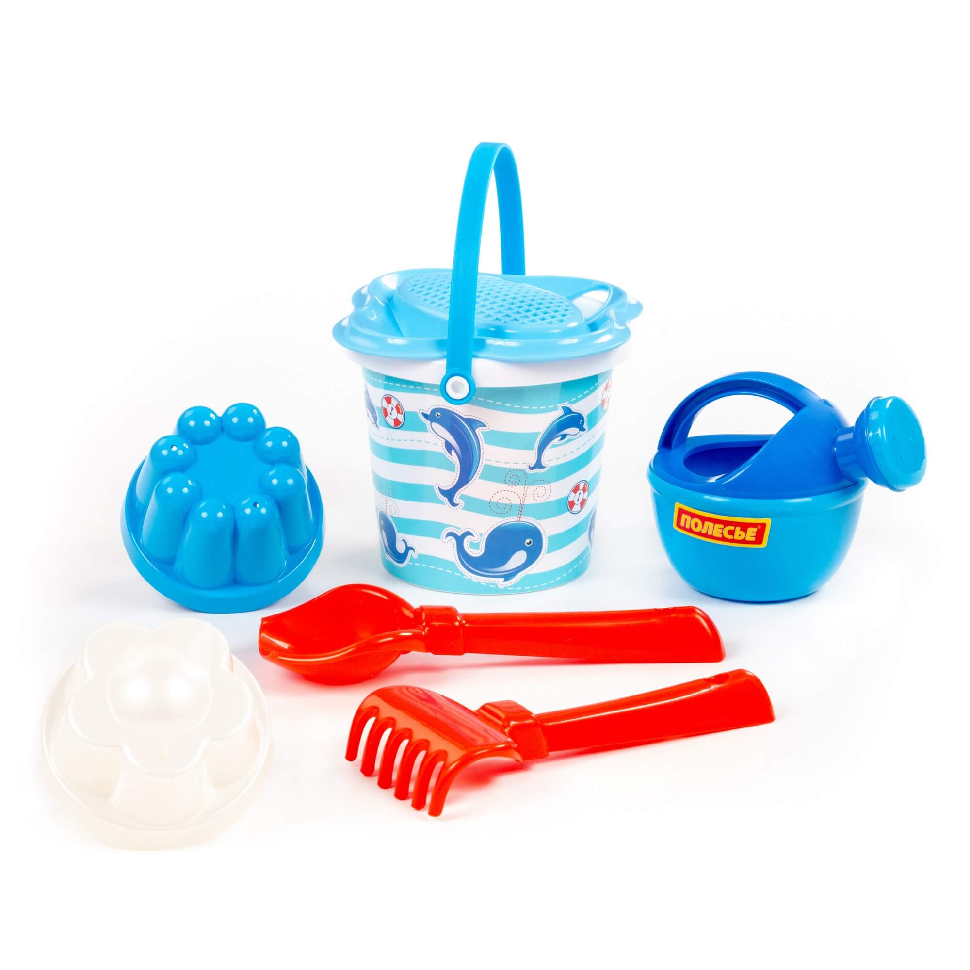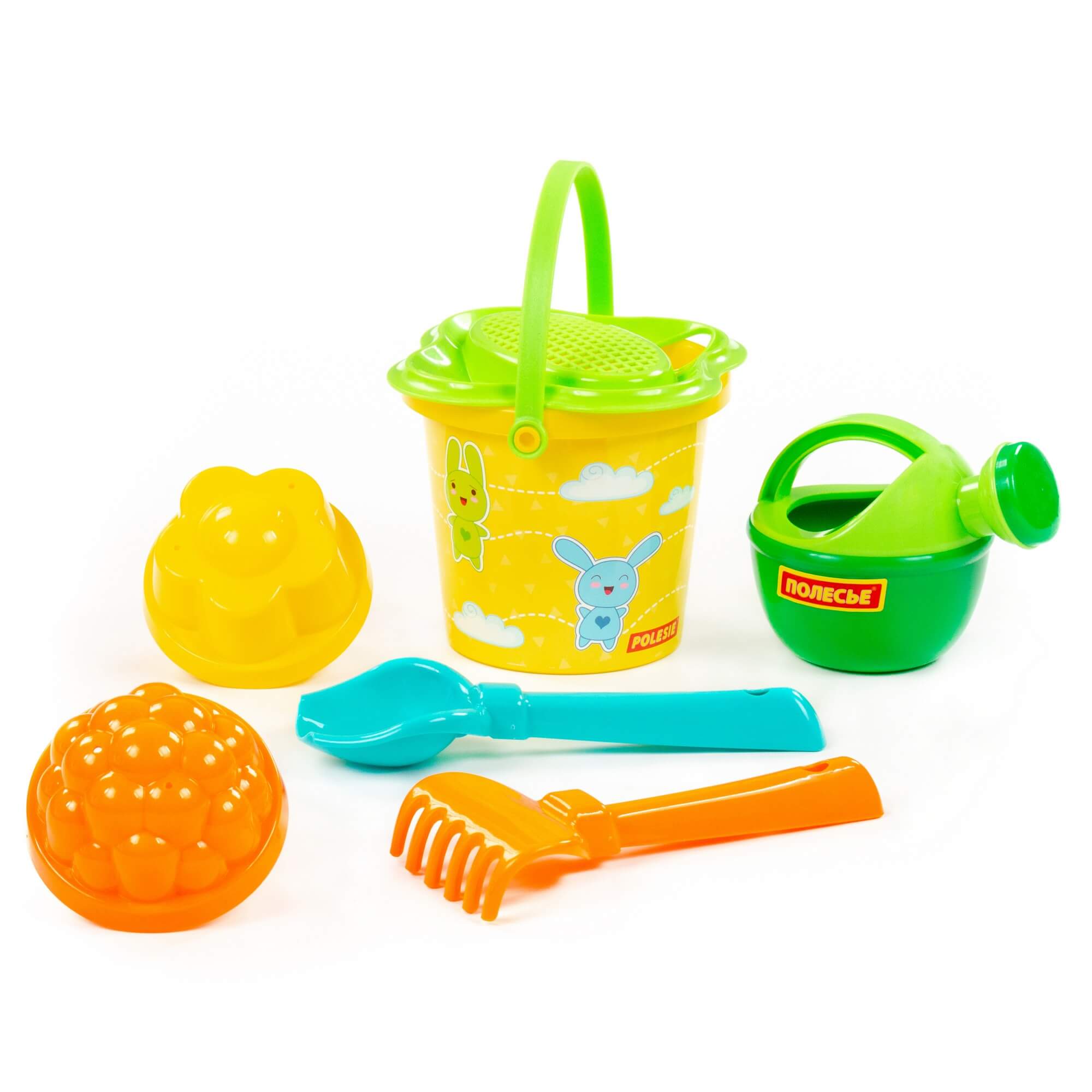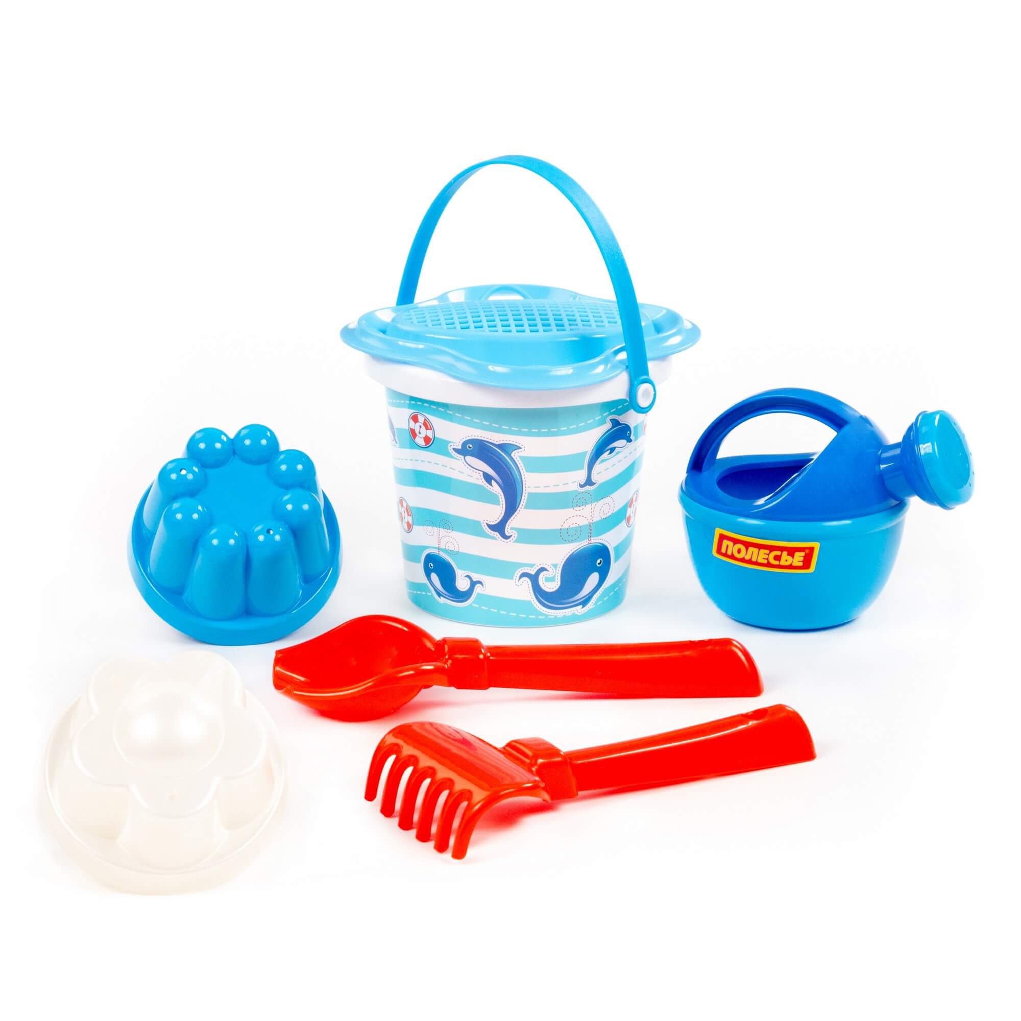 Ведро малое с наклейкой, ситечко-цветок, совок №2, грабельки №2, 2 формочки, лейка малая №3