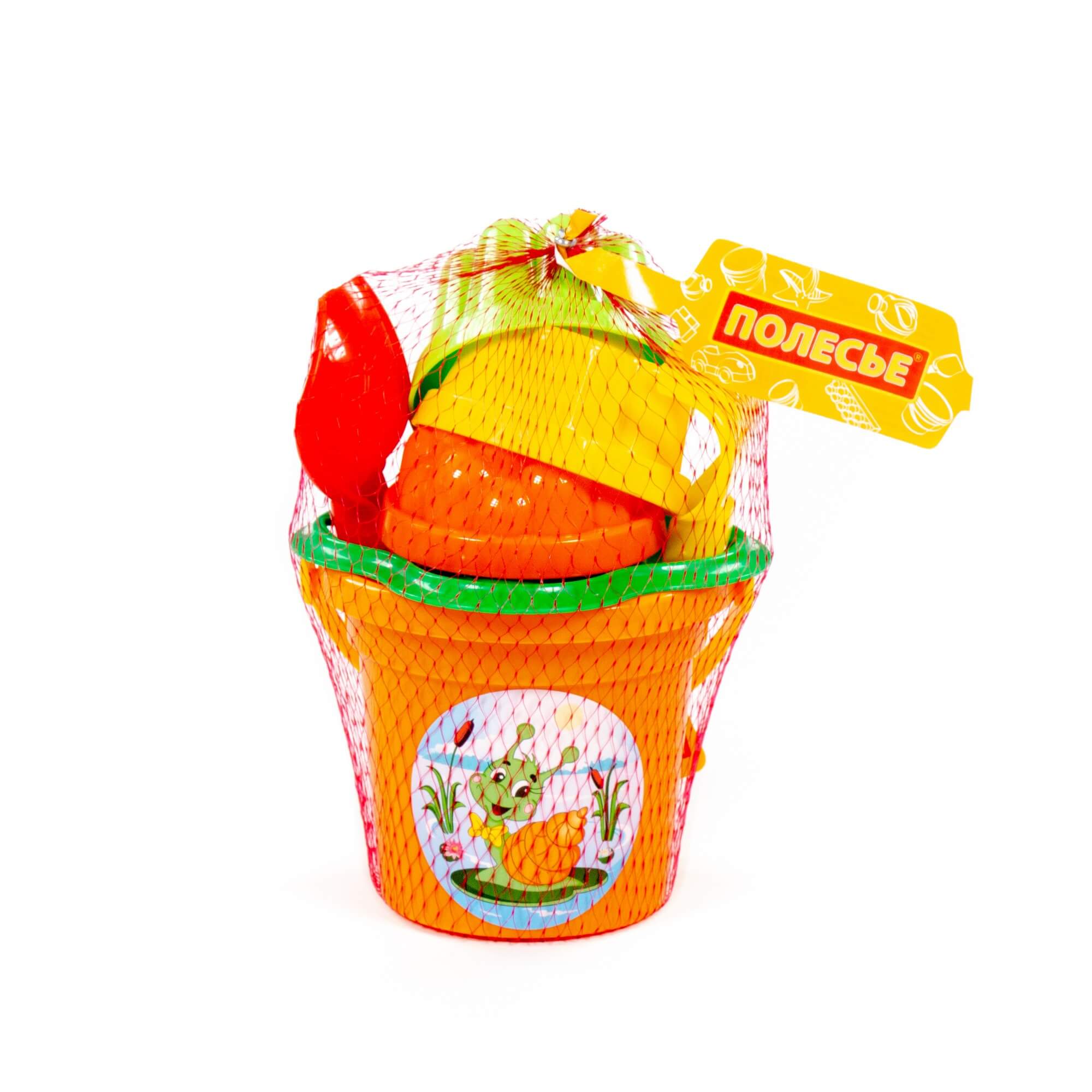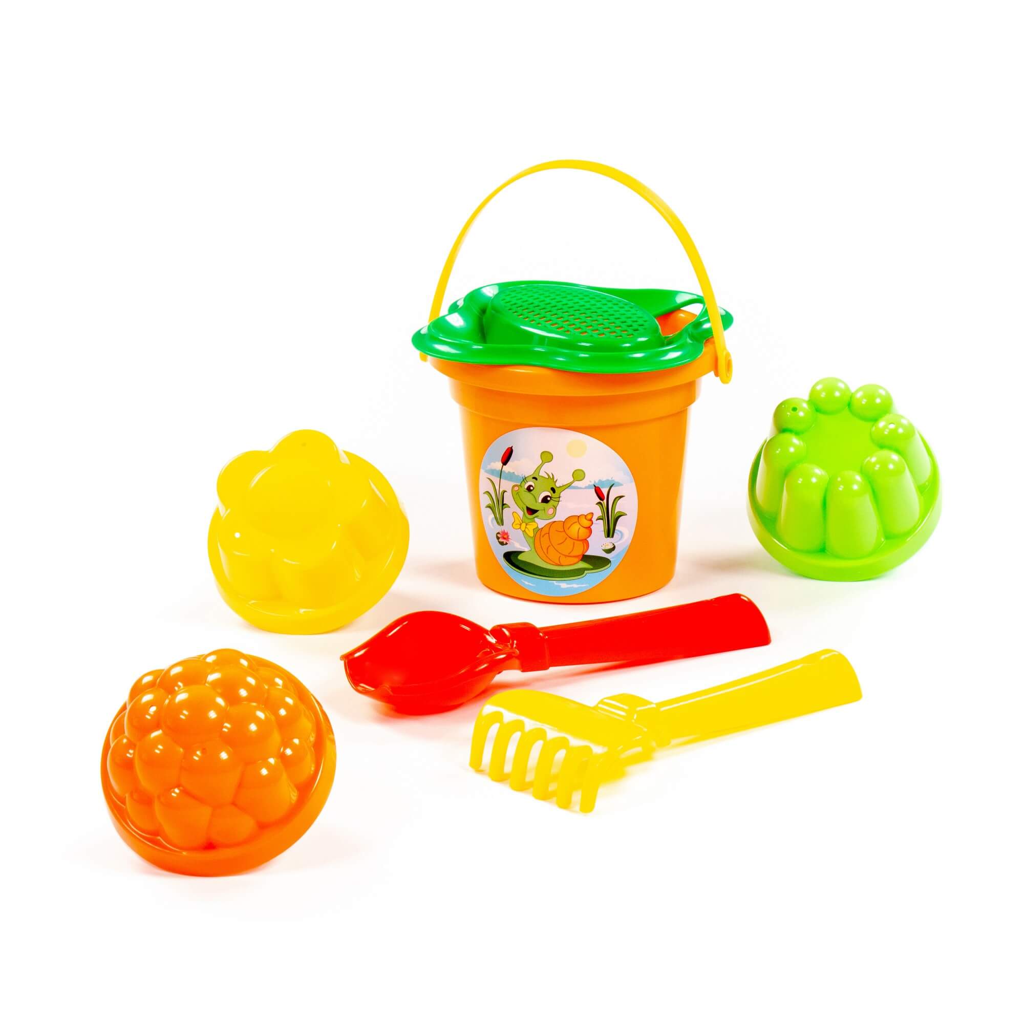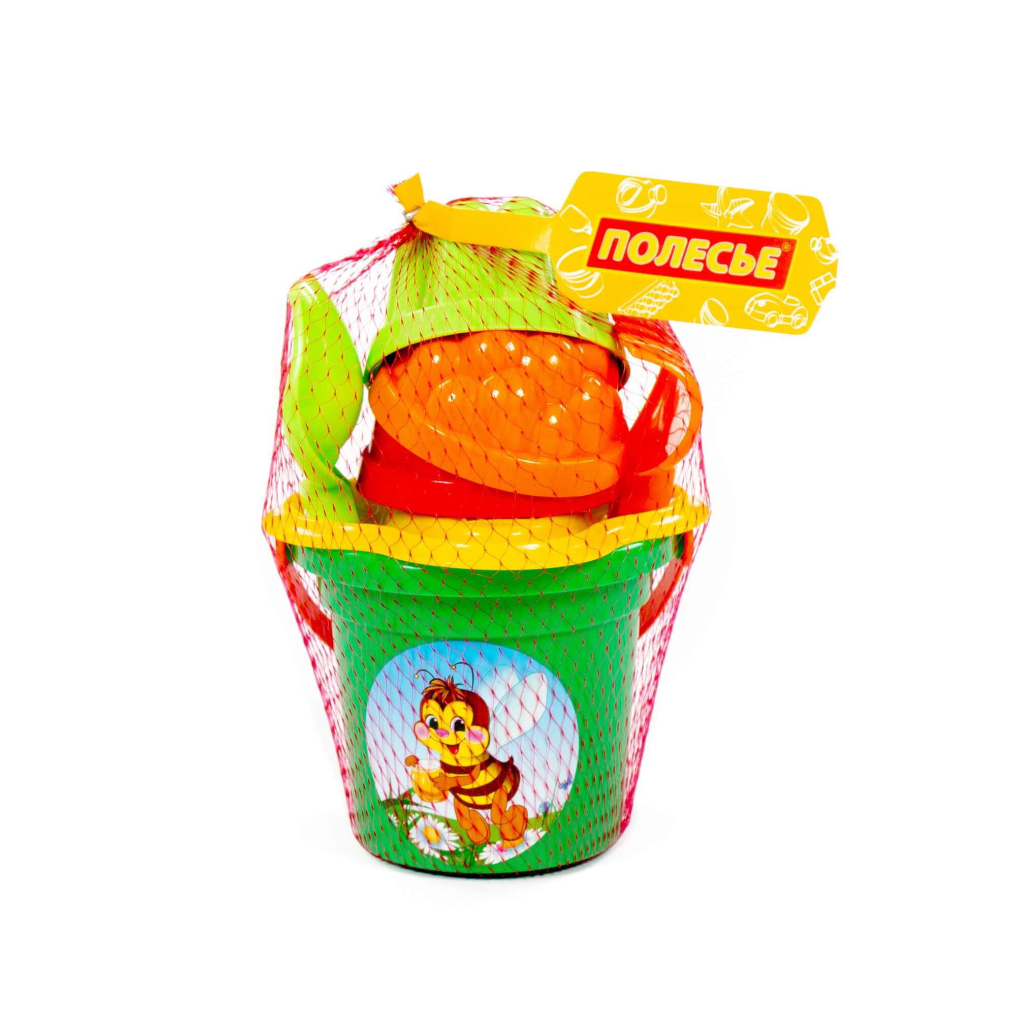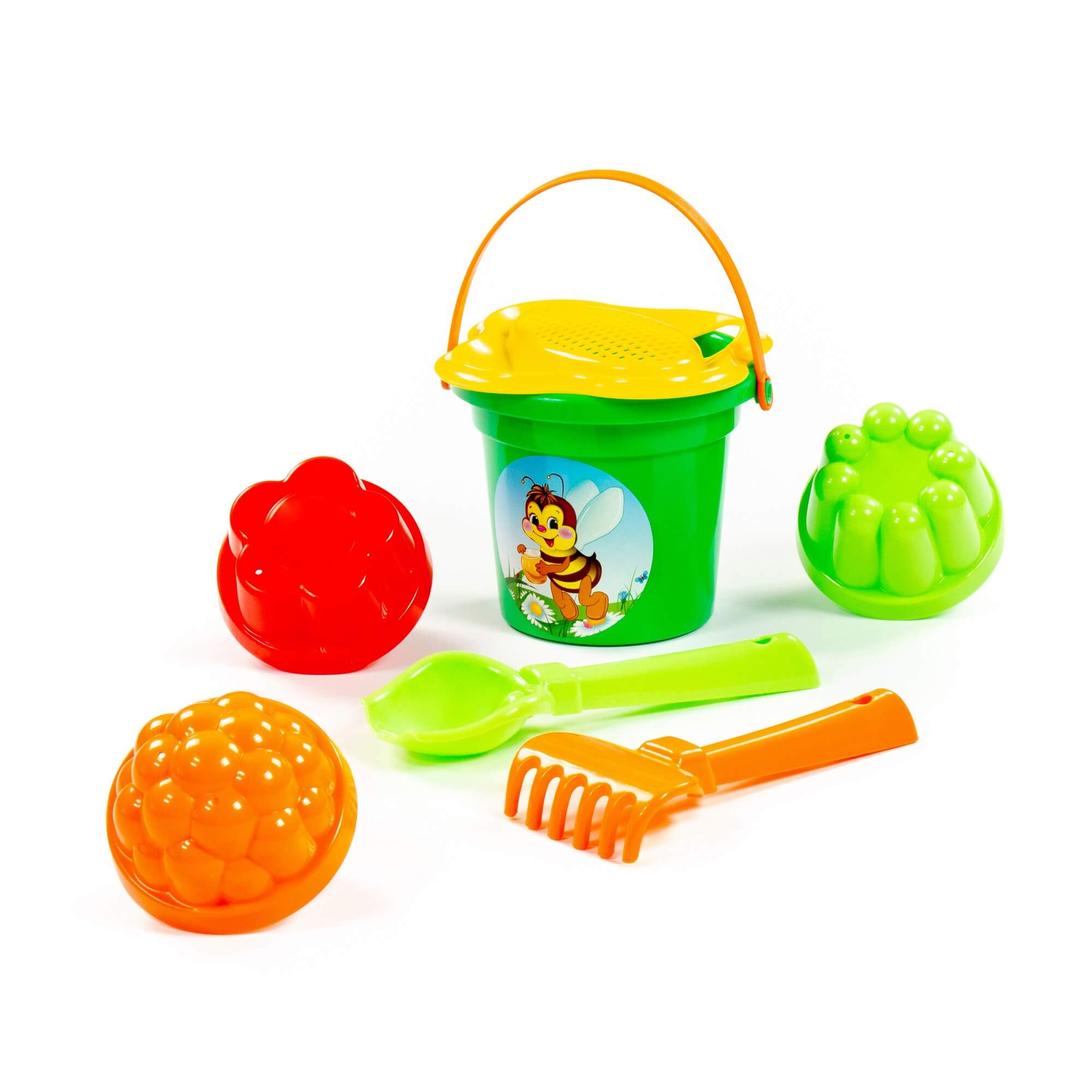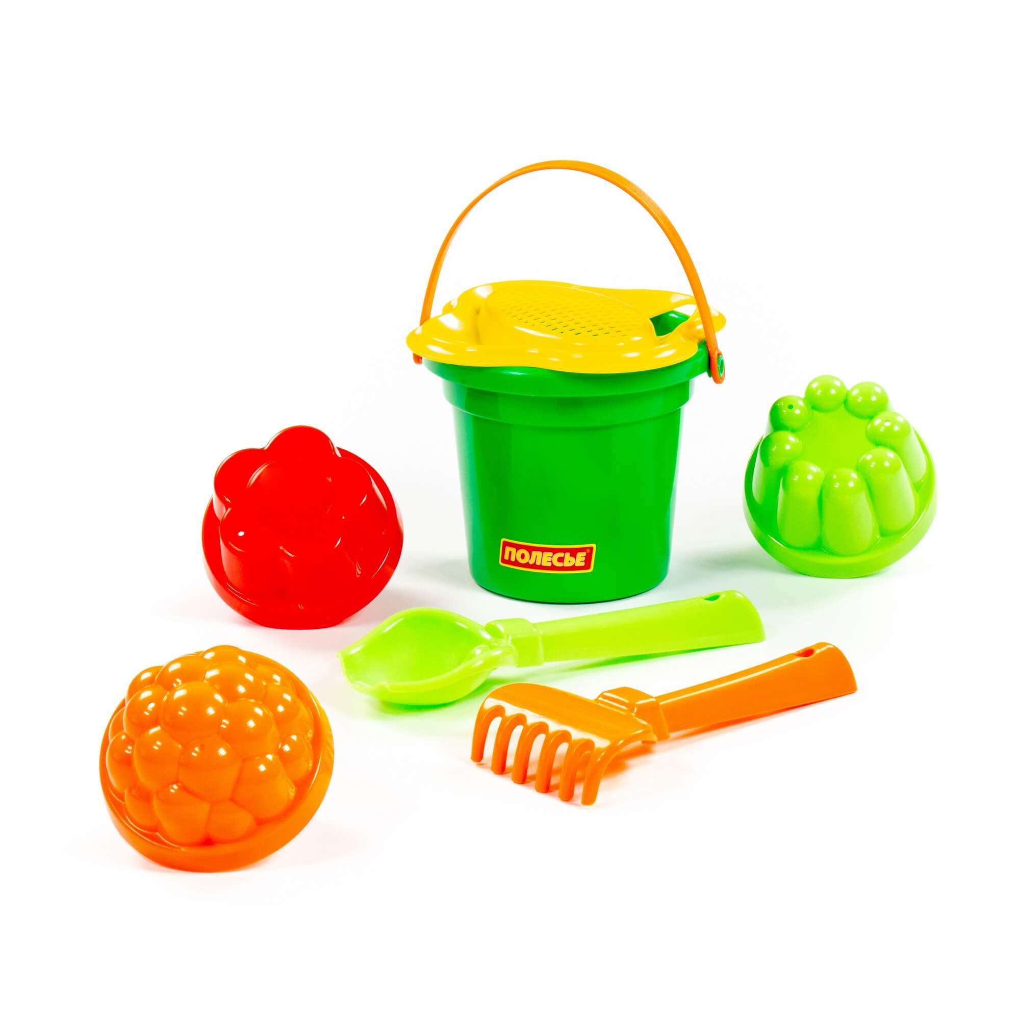 Игрушка детская из полимерных материалов с элементами из металла. Назначение: игрушка предназначена для детей от 3-х лет и старше (возрастная адресованность согласно информации о маркировке). Ведро малое, ситечко-цветок, 3 формочки, совок №2, грабельки №2. Размер: 130х130х184 мм.