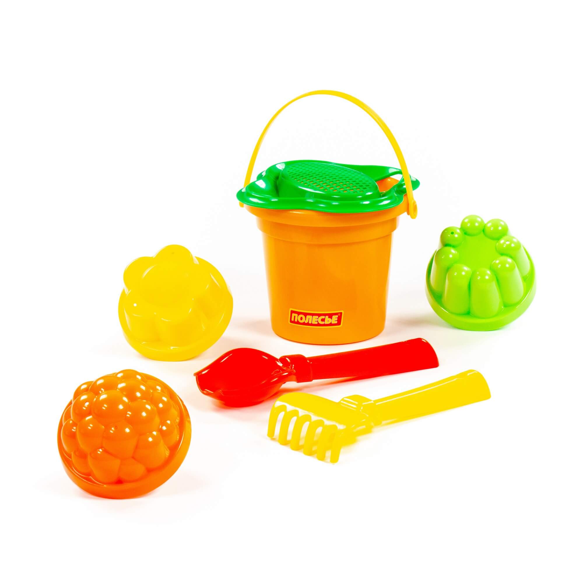 Набор №26: ведро малое, ситечко-цветок, совок №2, грабельки №2, 3 формочки, Артикул 2181
