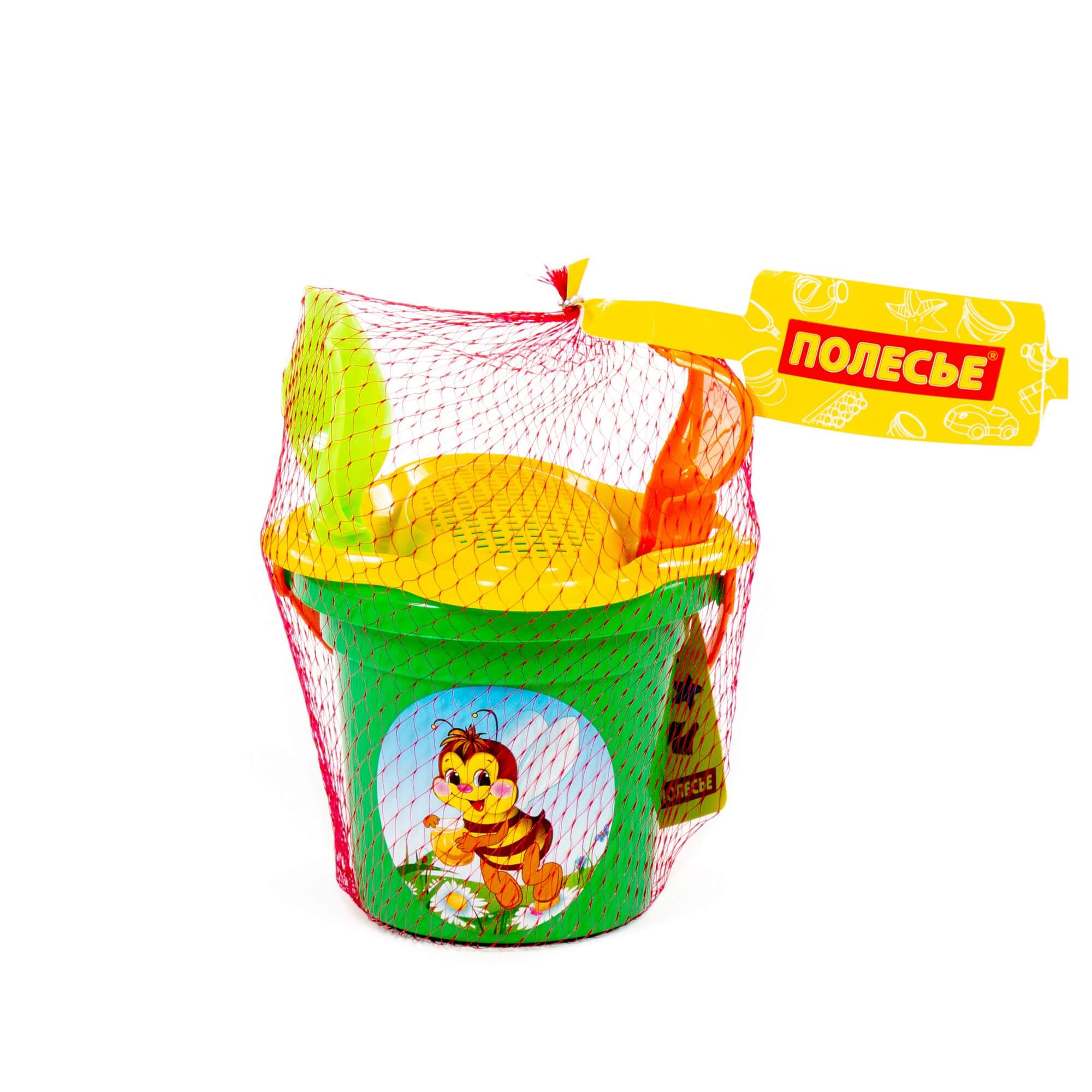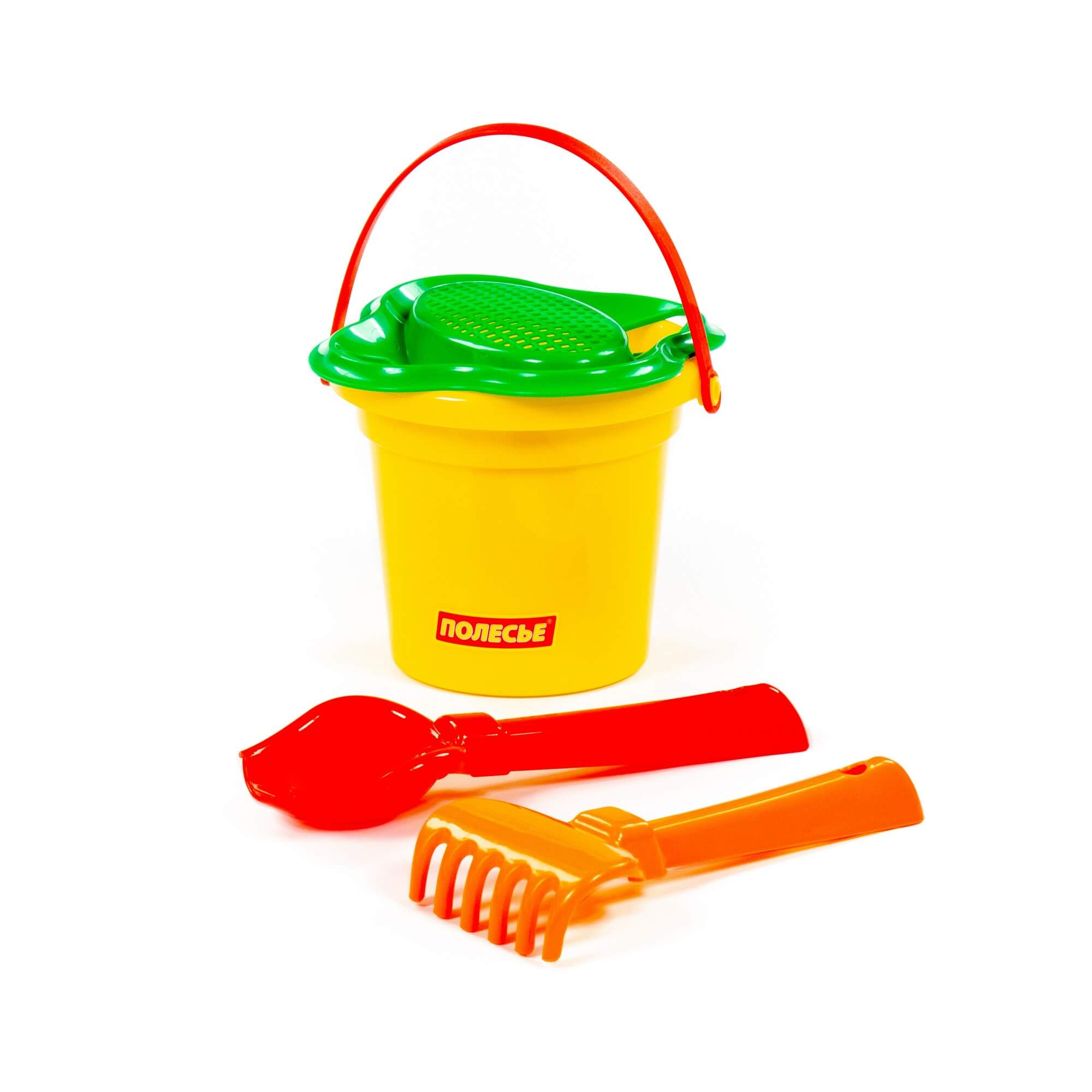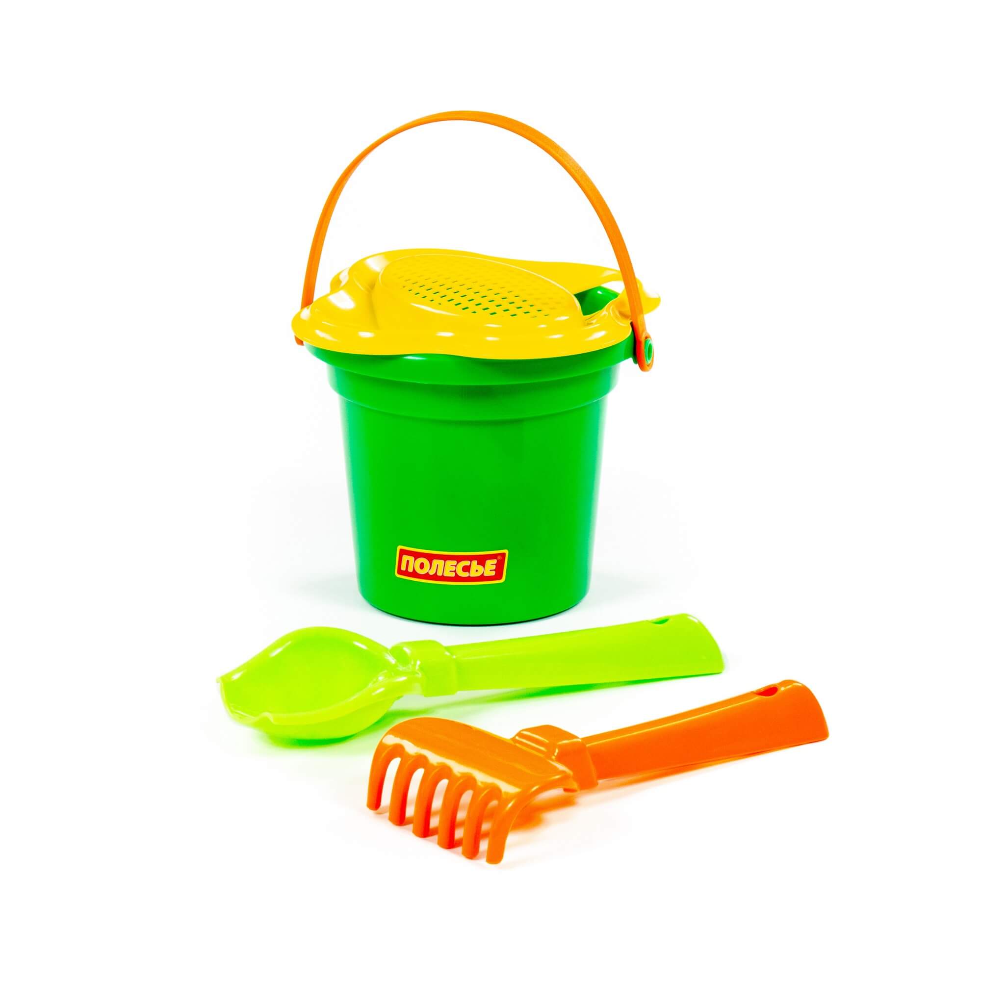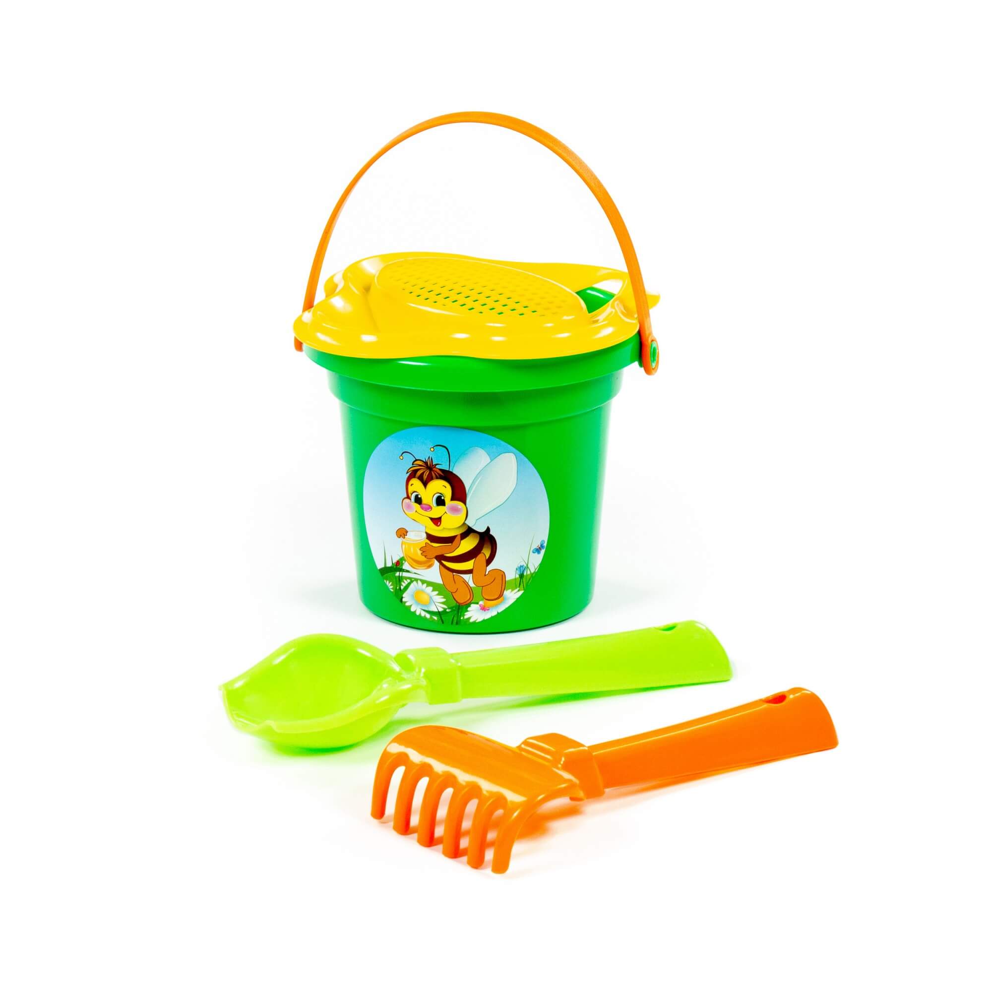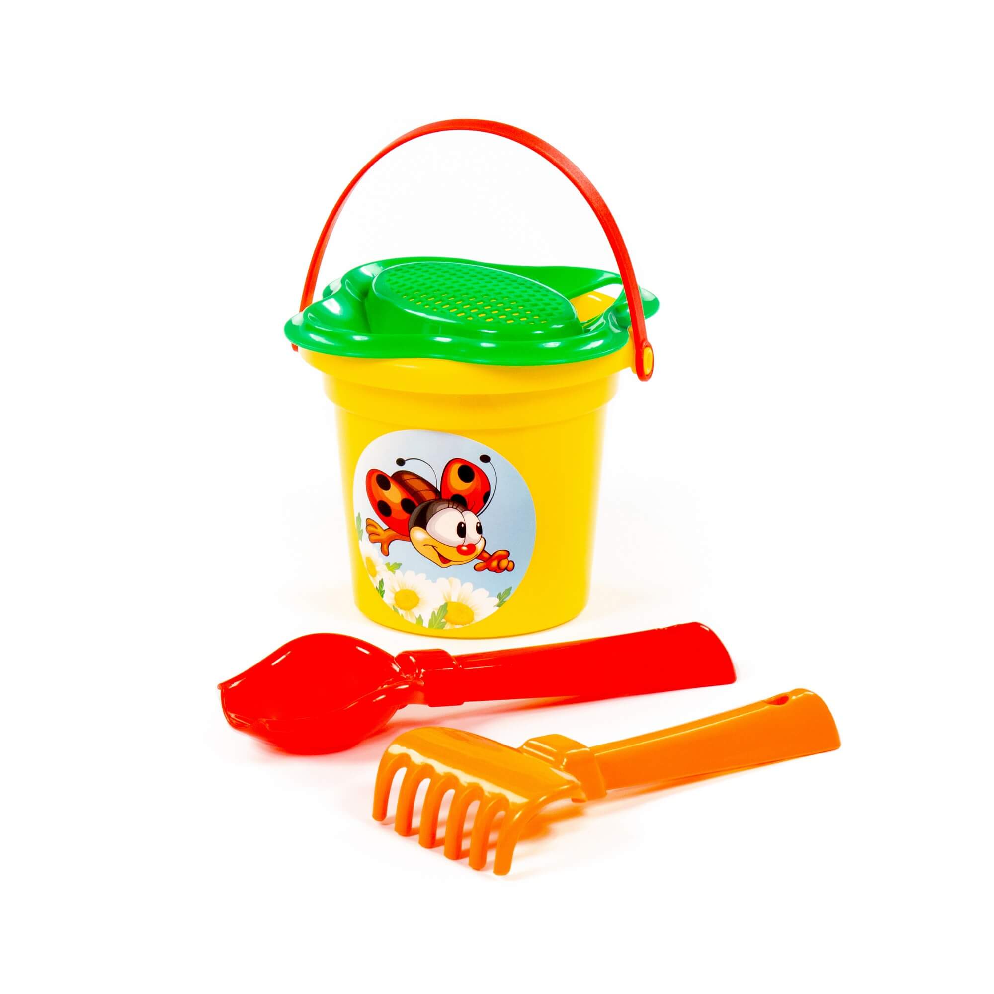 Игрушка детская из полимерных материалов. Назначение: игрушка предназначена для детей от 3-х лет и старше (возрастная адресованность согласно информации о маркировке). Ведро малое, ситечко-цветок, совок №2, грабельки №2. Размер: 133х133х180 мм.