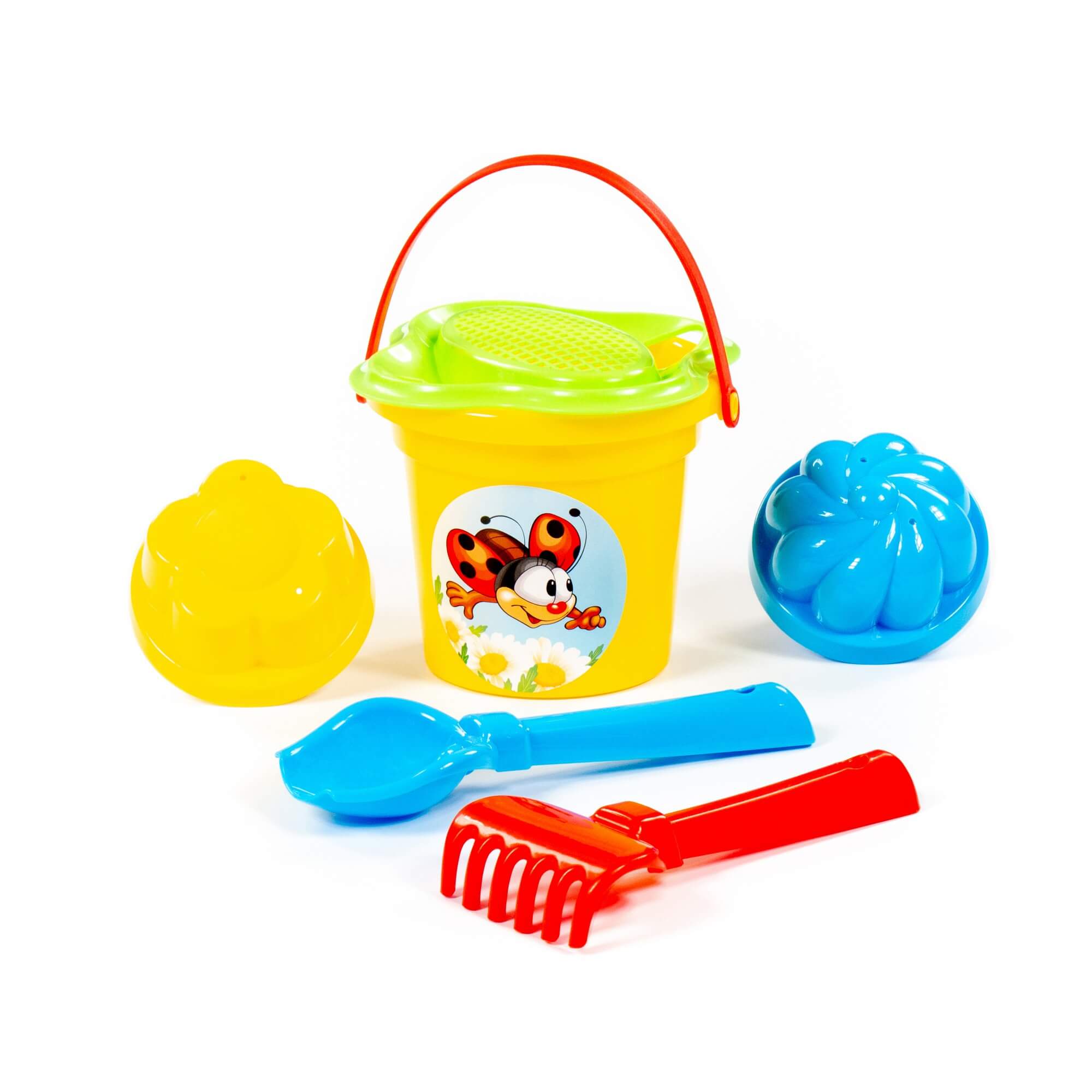 Набор №39: ведро малое, ситечко-цветок, совок №2, грабельки №2, 2 формочки, Артикул 2310