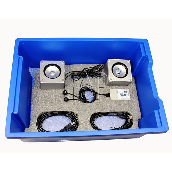 Для создания звукового поля нужной конфигурации используется комплект из двух динамиков с внешней звуковой платой, а для фиксации параметров звука – двухканальный датчик звука. Оба устройства подключаются к USB-входам персонального компьютера (в комплект не входит).