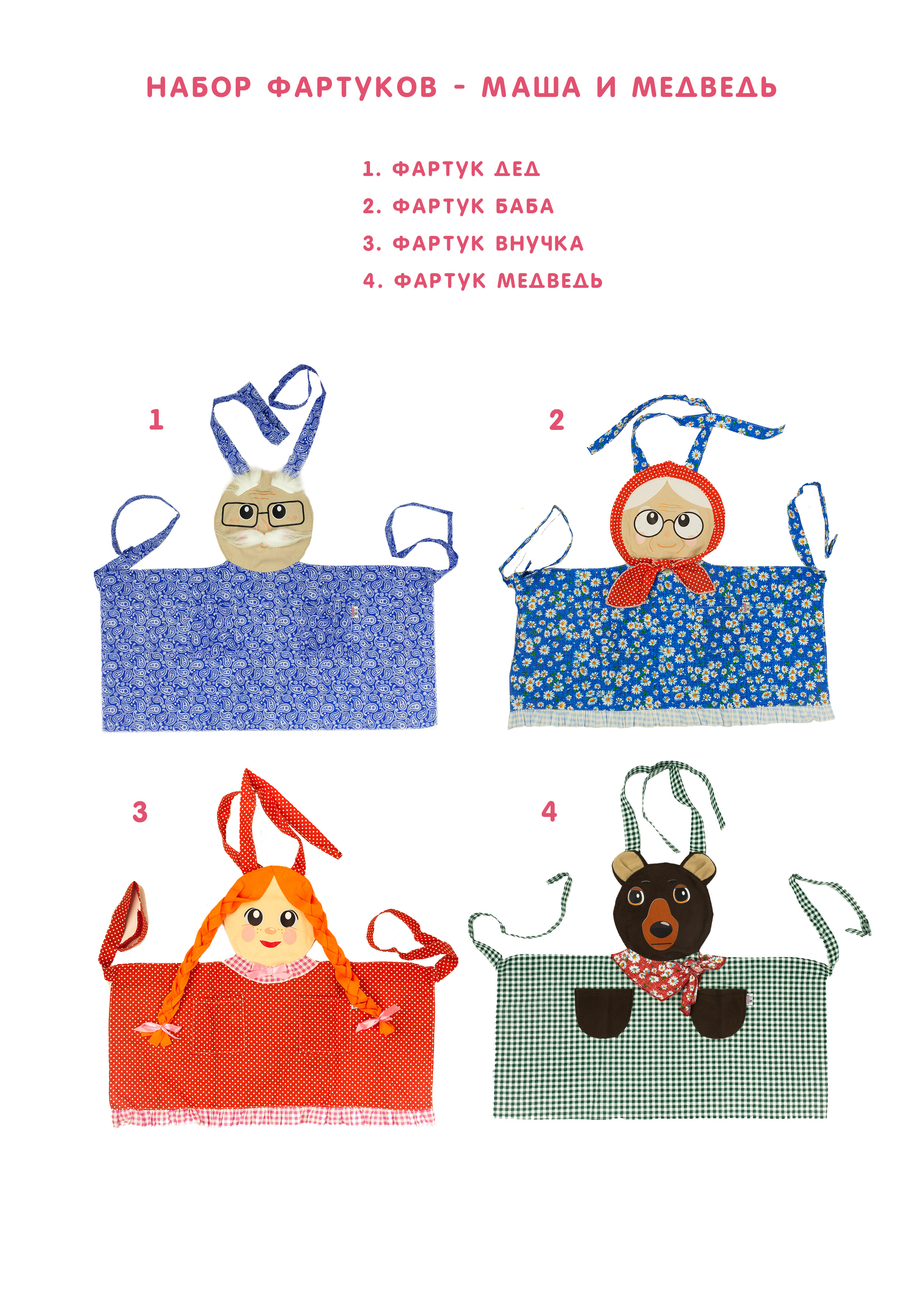 Набор фартуков - Маша и медведь (4 фартука)