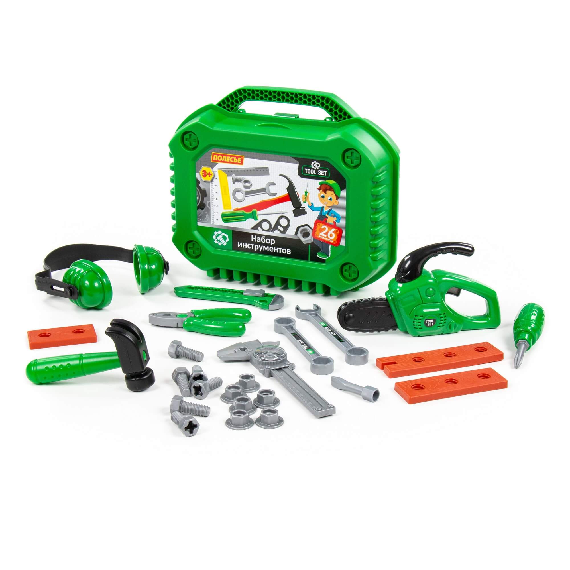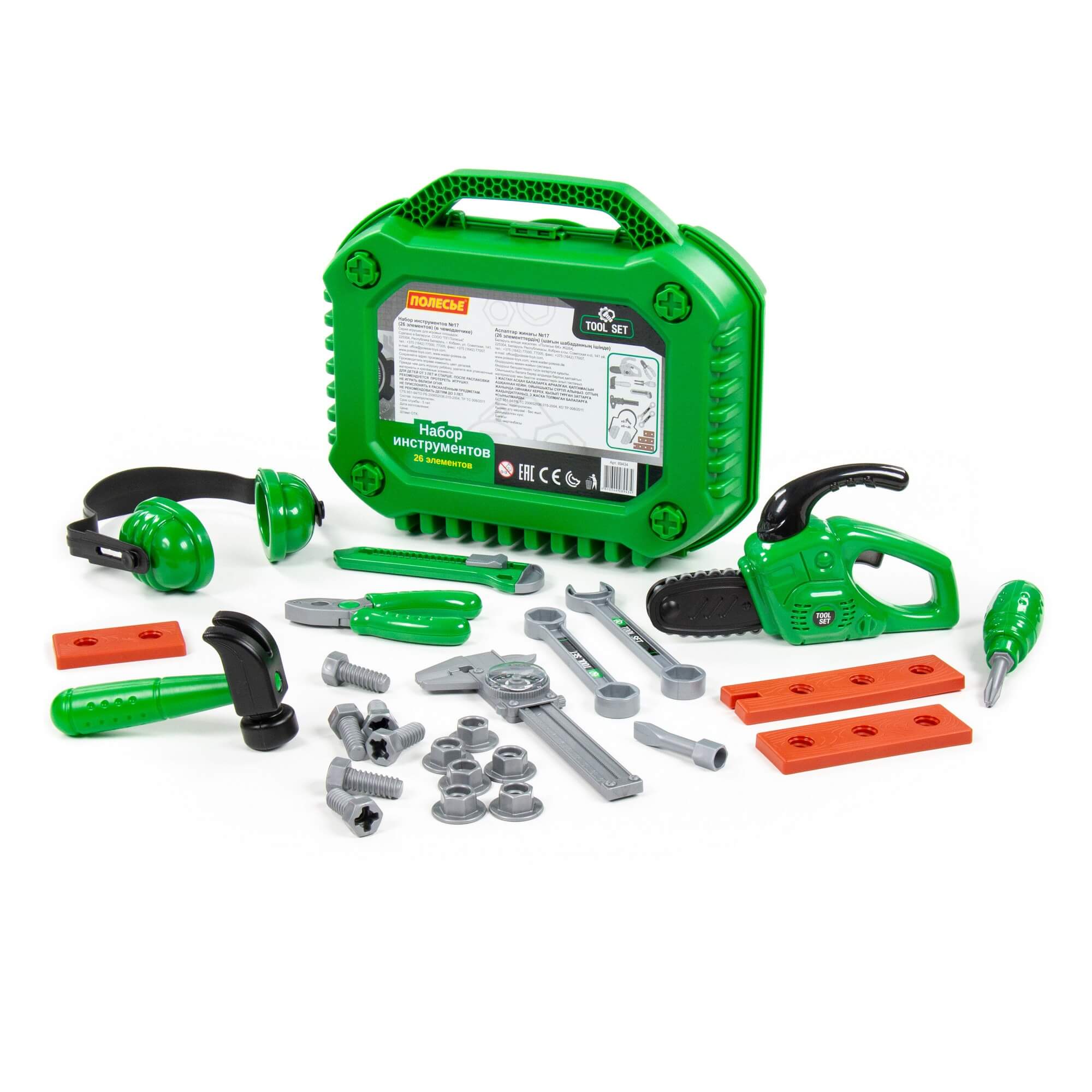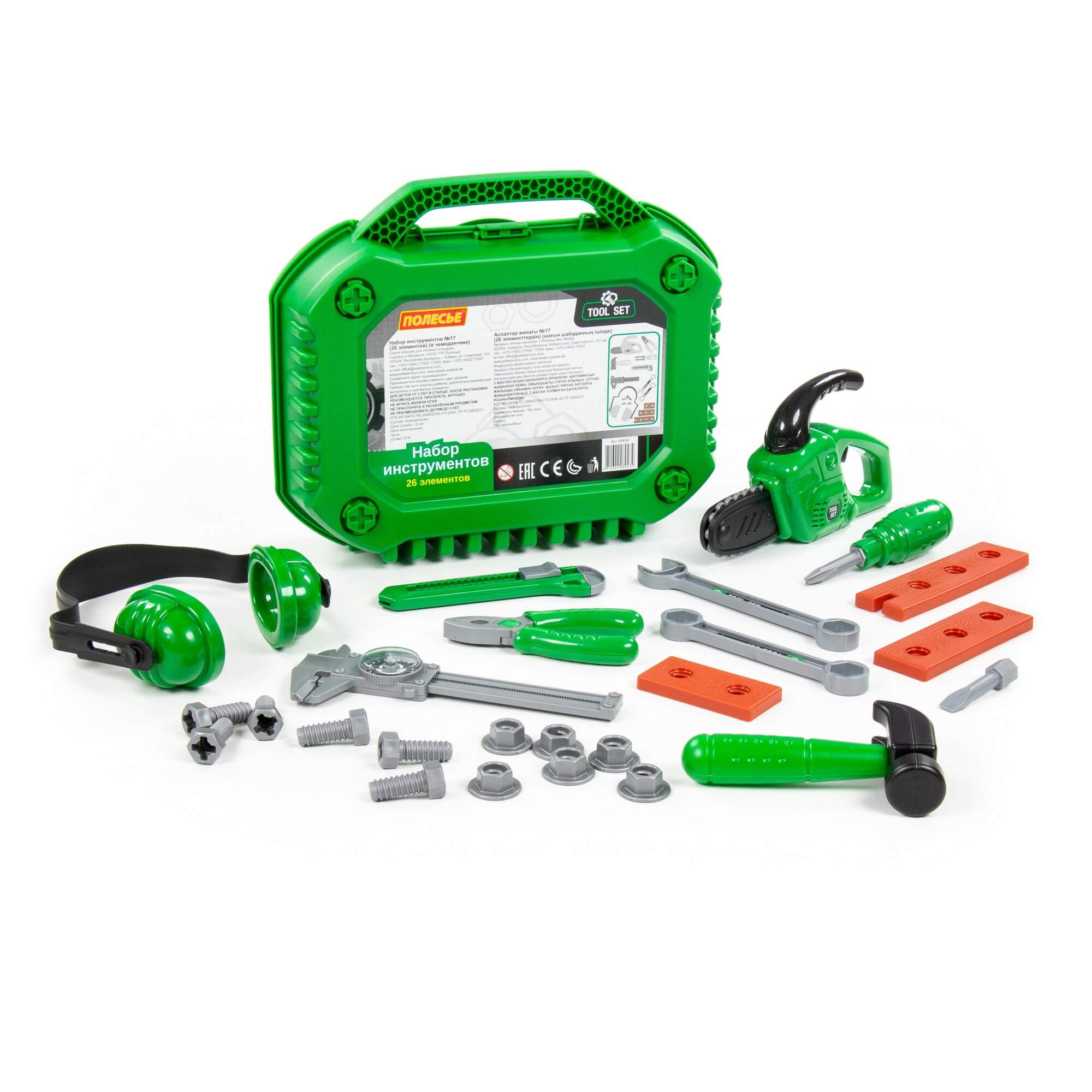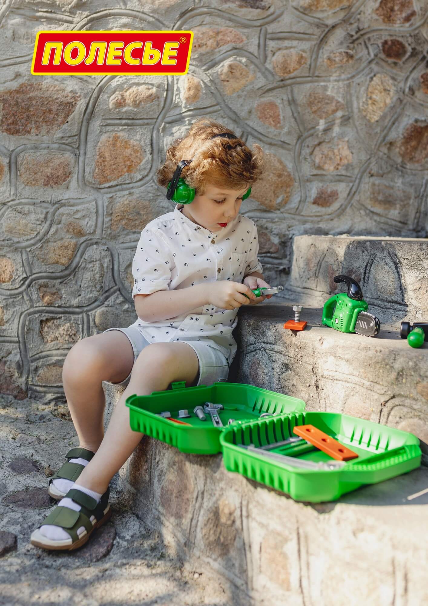 Наборы инструментов, производимые компанией «Полесье», могут использоваться как для проведения групповых занятий в дошкольных учреждениях, так и для самостоятельной игры ребёнка. Все инструменты, входящие набор, функционально идентичны взрослым аналогам и позволяют развивать мелкую моторику, координацию ребенка, точность движений. Набор инструментов помогает познакомить детей с основными особенностями взаимодействия отдельных частей и деталей, развивает пространственное воображение. В комплект входит: бензопила (1 шт.), строительные наушники (1 шт.), штангенциркуль (1 шт.), нож строительный (1 шт.), пассатижи (1 шт.), молоток (1 шт.), отвёртка со сменными насадками (1 шт.), рожково-накидной гаечный ключ (1 шт.), накидной гаечный ключ (1 шт.), болты (6 шт.), гайки (6 шт.), соединительные пластины (3 шт.), чемоданчик для инструментов.