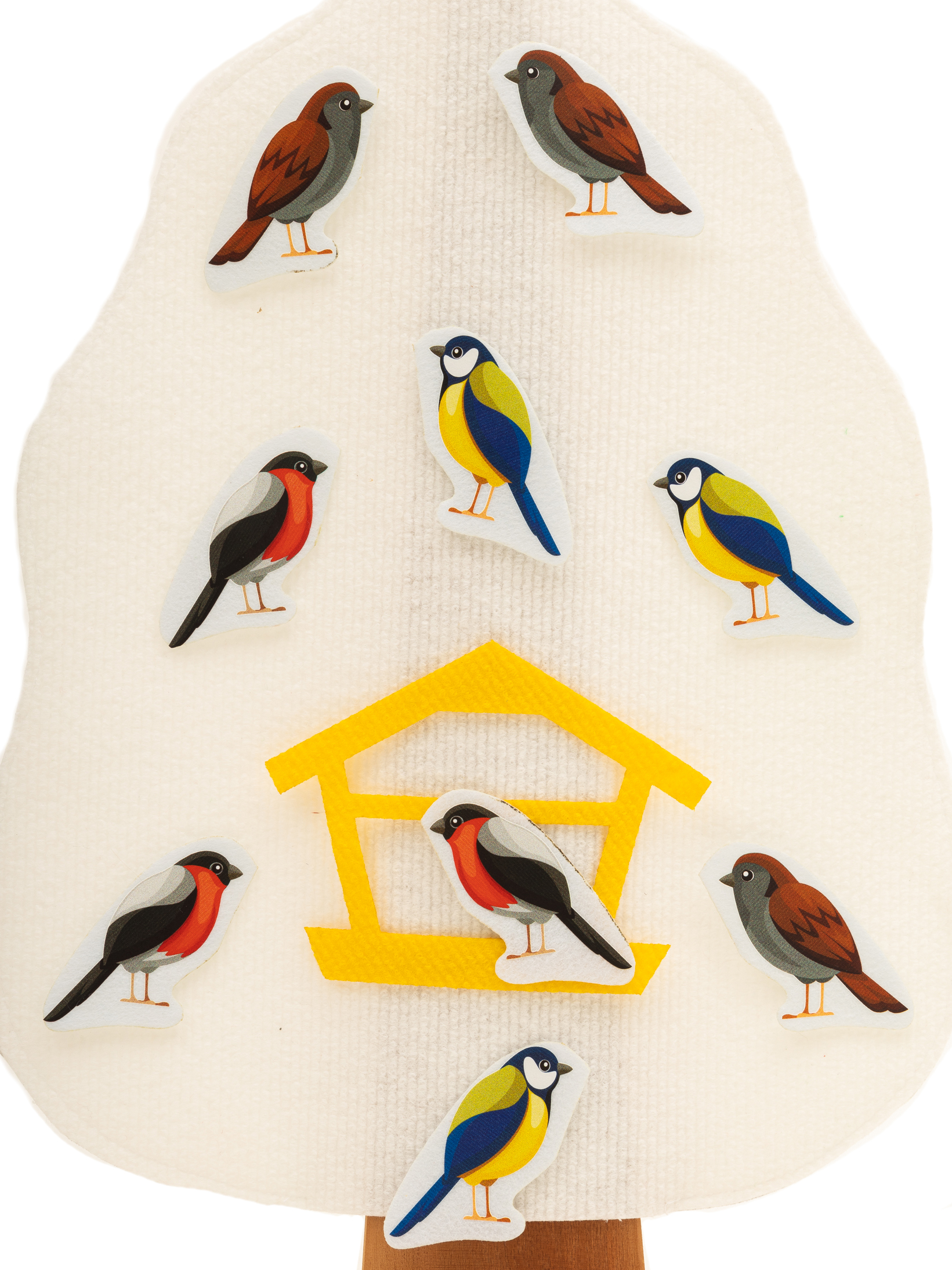 Материал: птички - фетр - 100% полиэстер, кормушка - ковролин 100% полиэстер..