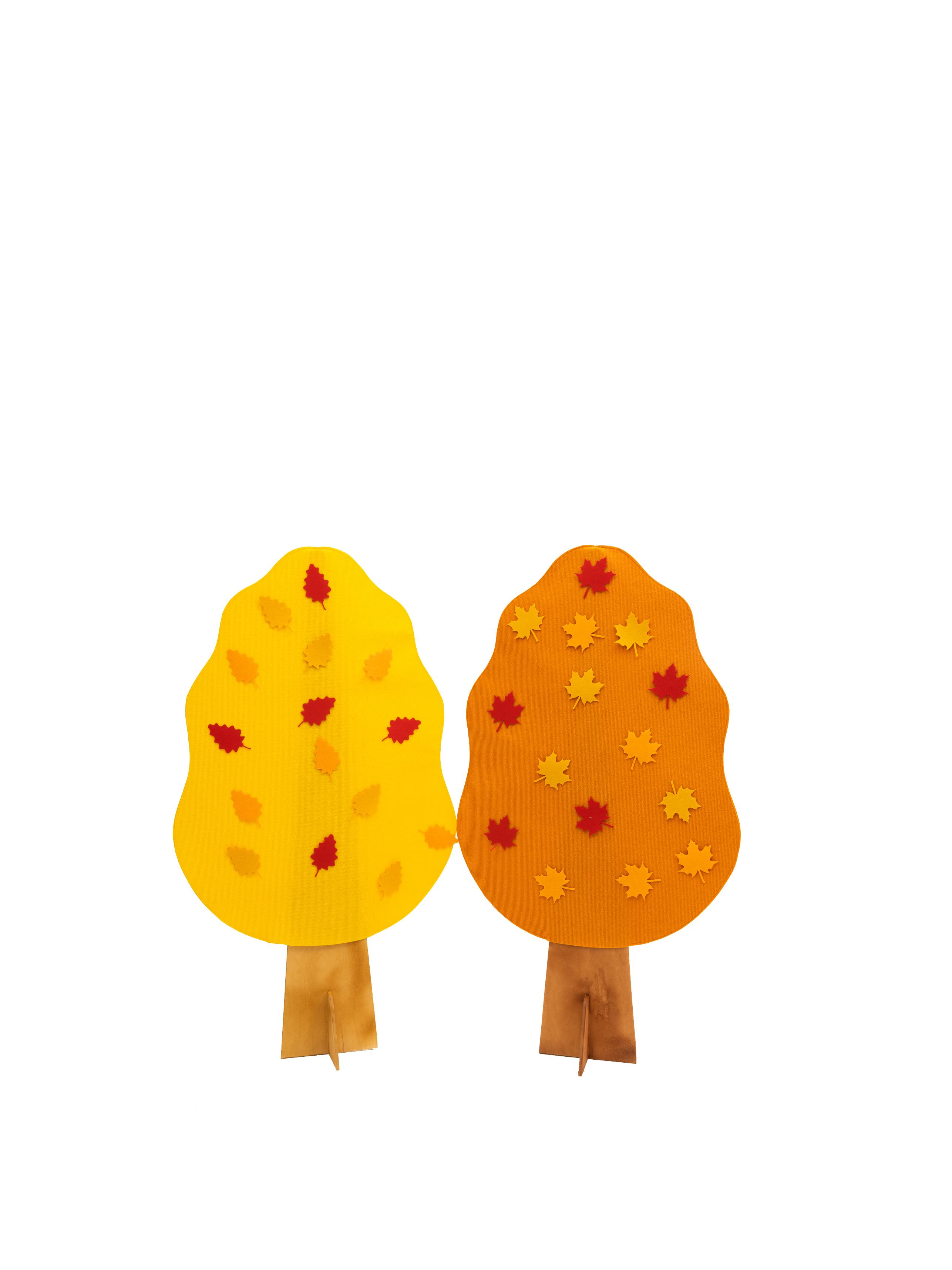 Описание:2 деревянных основы, 2 дерева - оранжевое,  желтое , 15 кленовых листьев (по 5 штук красных, желтых, оранжевых), 15 дубовых листьев (по 5 штук красных, желтых, оранжевых).