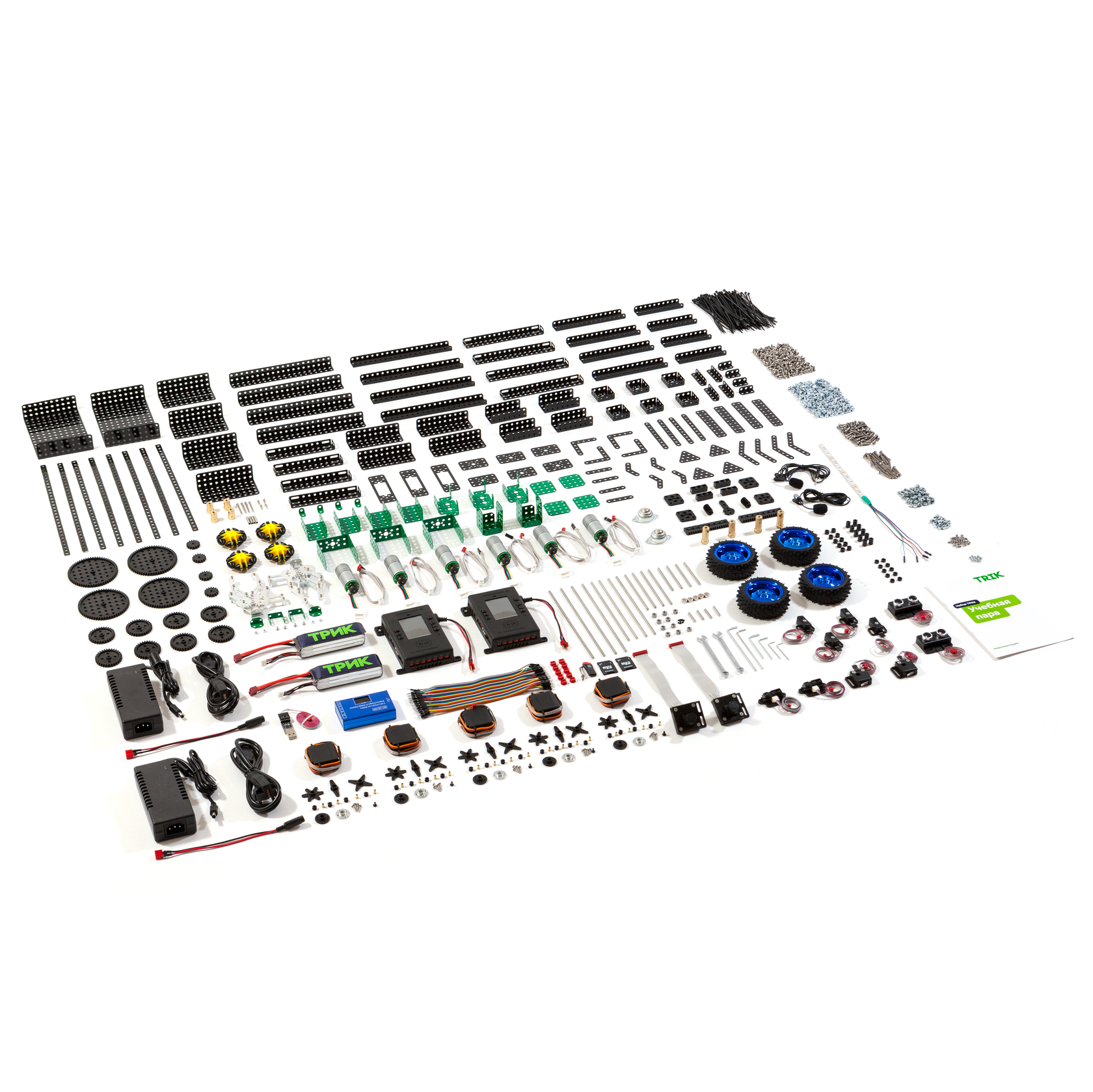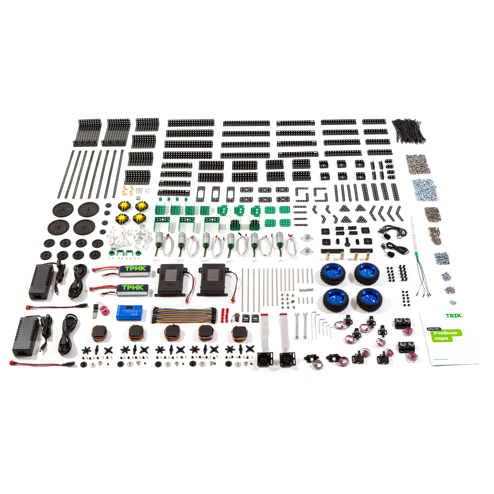 «Учебная пара» состоит из двух контроллеров ТРИК и всех необходимых комплектующих для создания двух учебно-соревновательных моделей с модулями технического зрения. С этими моделями в рамках образовательного процесса вы можете организовать соревнования по различным правилам, включая «Следование по линии», «Линию-профи», «Эстафету».