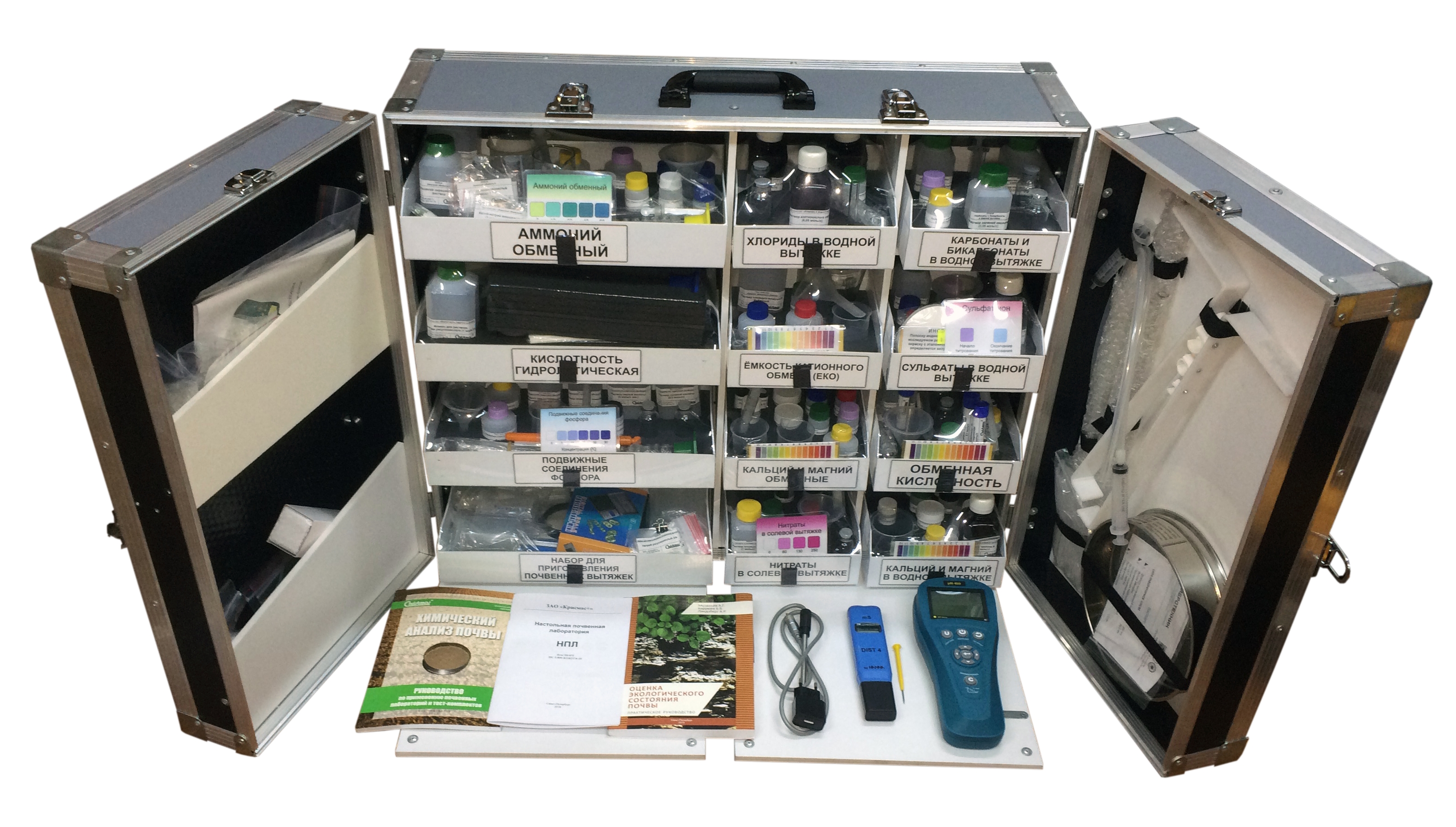 Настольная почвенная лаборатория НПЛ, производимая и поставляемая группой компаний «Крисмас», это лаборатория почвенного анализа, предназначена для оценки основных химических, а также морфологических и физических показателей состояния почв и почвогрунтов. Лаборатория эффективно используется при выполнении проектных и учебно-исследовательских работ в курсах химии, биологии, географии, факультативно в экологии, а также в специализированных образовательных организациях при изучении методов и средств почвенного, агрохимического и мелиоративного анализа.