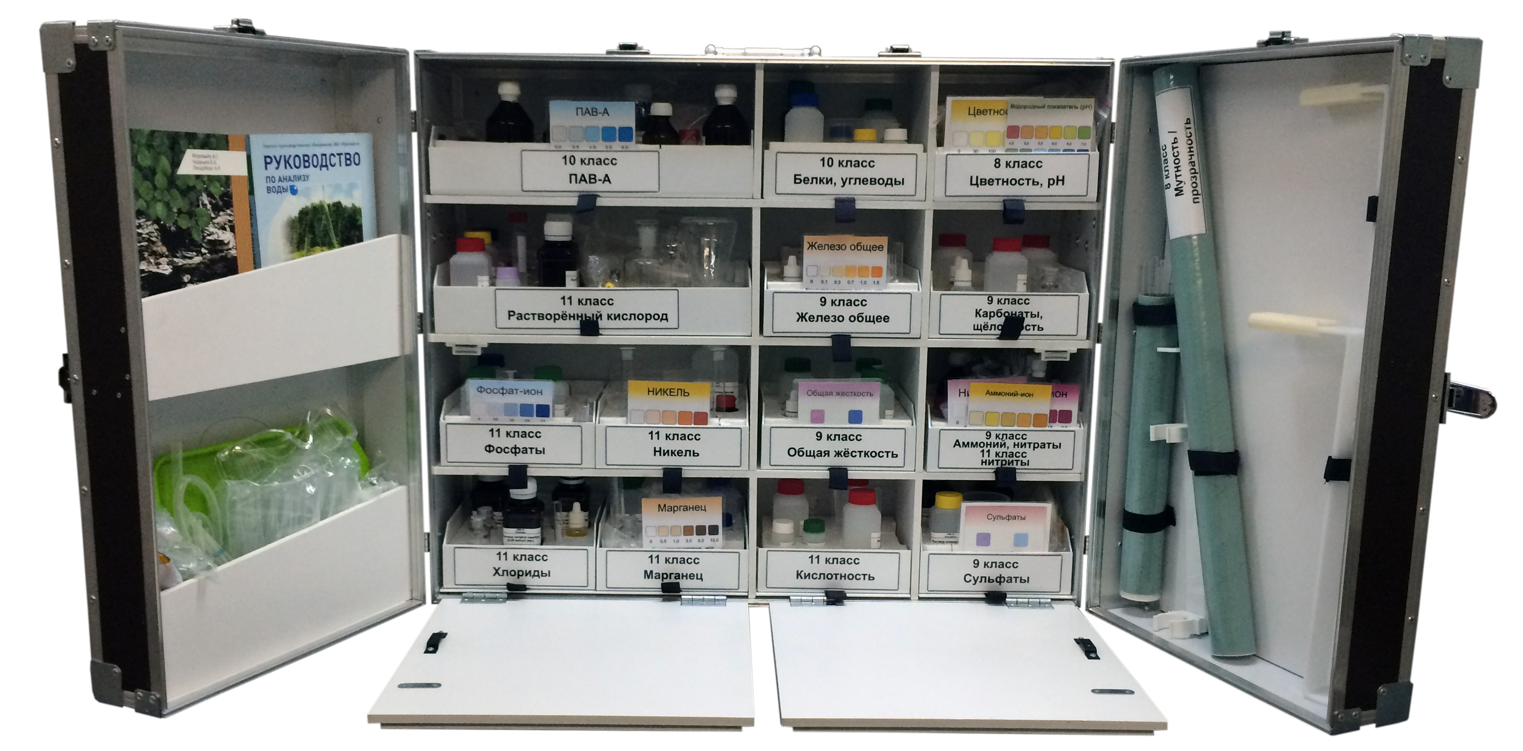 Класс-комплект позволяет актуализировать и обобщать знания о свойствах неорганических и органических химических соединений, способах их идентификации, выполнять качественные, полуколичественные и количественные определения применительно к разнообразной экологической тематике, связанной с исследованием показателей качества проб воды и водных почвенных вытяжек органолептическими, химическими и инструментальными методами.