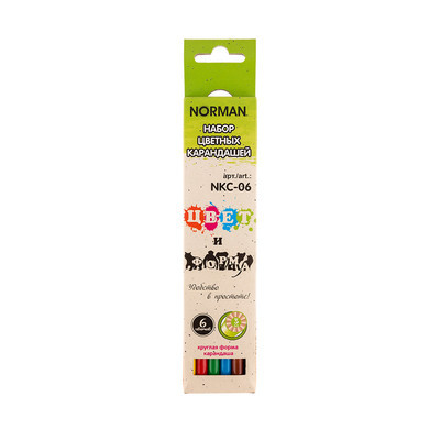 Характеристики "NORMAN" "Цвет и форма" NKC-06 Набор цветных карандашей круглых 6 цв.