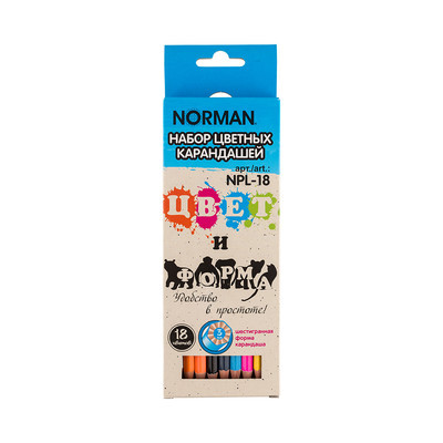 "NORMAN" "Цвет и форма" NPL-18 Набор цветных карандашей шестигранных 18 цв.