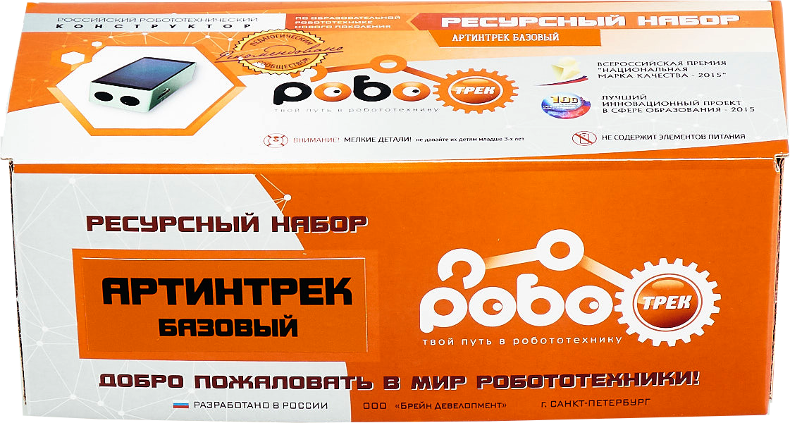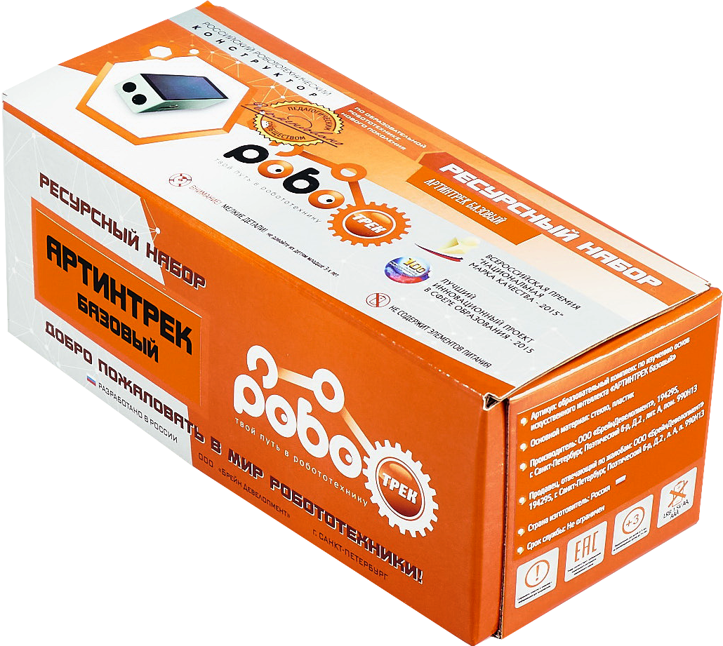 В состав набора входит: Модуль Артинтрек, способный распознавать видео и аудио потоки (с помощью камеры и микрофона входящих в комплект) в режиме реального времени; контроллер ТРЕКДУИНО;  Аудиотрек, позволяющий воспроизводить различные МР3 файлы. Модуль Артинтрек может использоваться для изучения основ искусственного интеллекта и компьютерного зрения.  Распознавание происходит внутренними средствами модуля и не требует  подключения к сети Интернет. Для обучения собственных нейронных сетей используется специальное программное обеспечение NNTrack. Контроллер Трекдуино в состав комплекса не входит. Модуль Артинтрек может использоваться для изучения основ искусственного интеллекта и компьютерного зрения. Готовые скрипты позволят передавать результаты работы нейронных сетей на контроллер ТРЕКДУИНО для управления робототехническими моделями. Для обучения собственных нейронных сетей используется специальное ПО NNTrack.