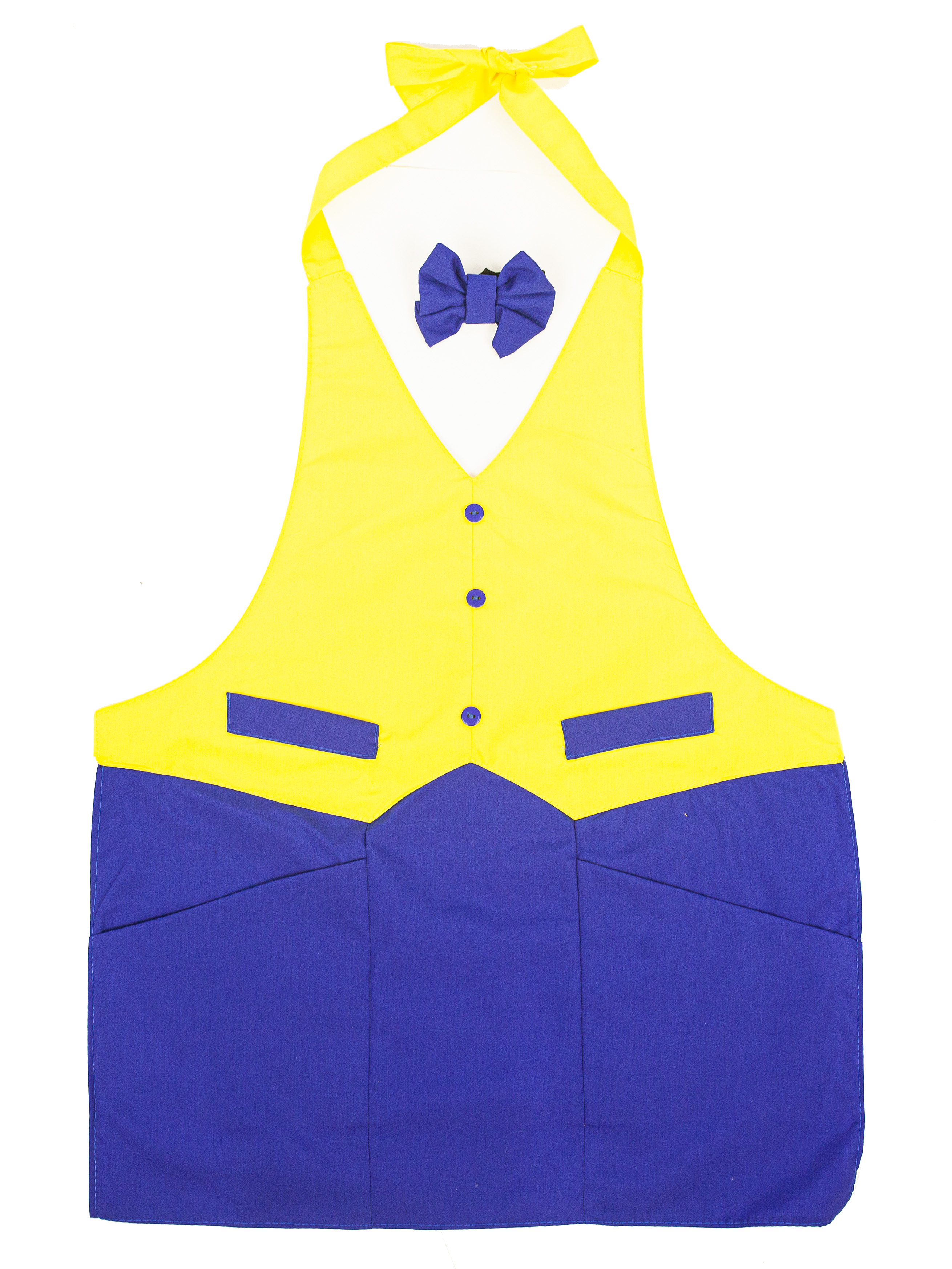 Материал: смесовая ткань 35% хлопка, 65% полиэстера Комплектация 2 предмета – фартук с пуговицами, стилизованными кармашками, завязки на шее и на талии, «бабочка» на резинке.