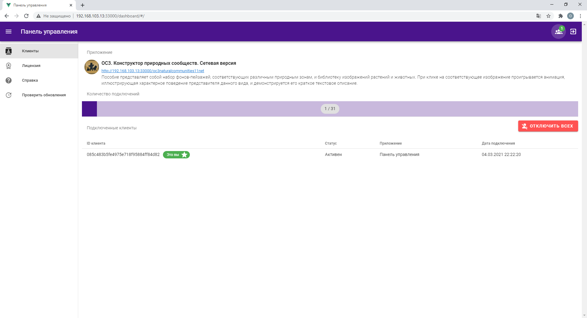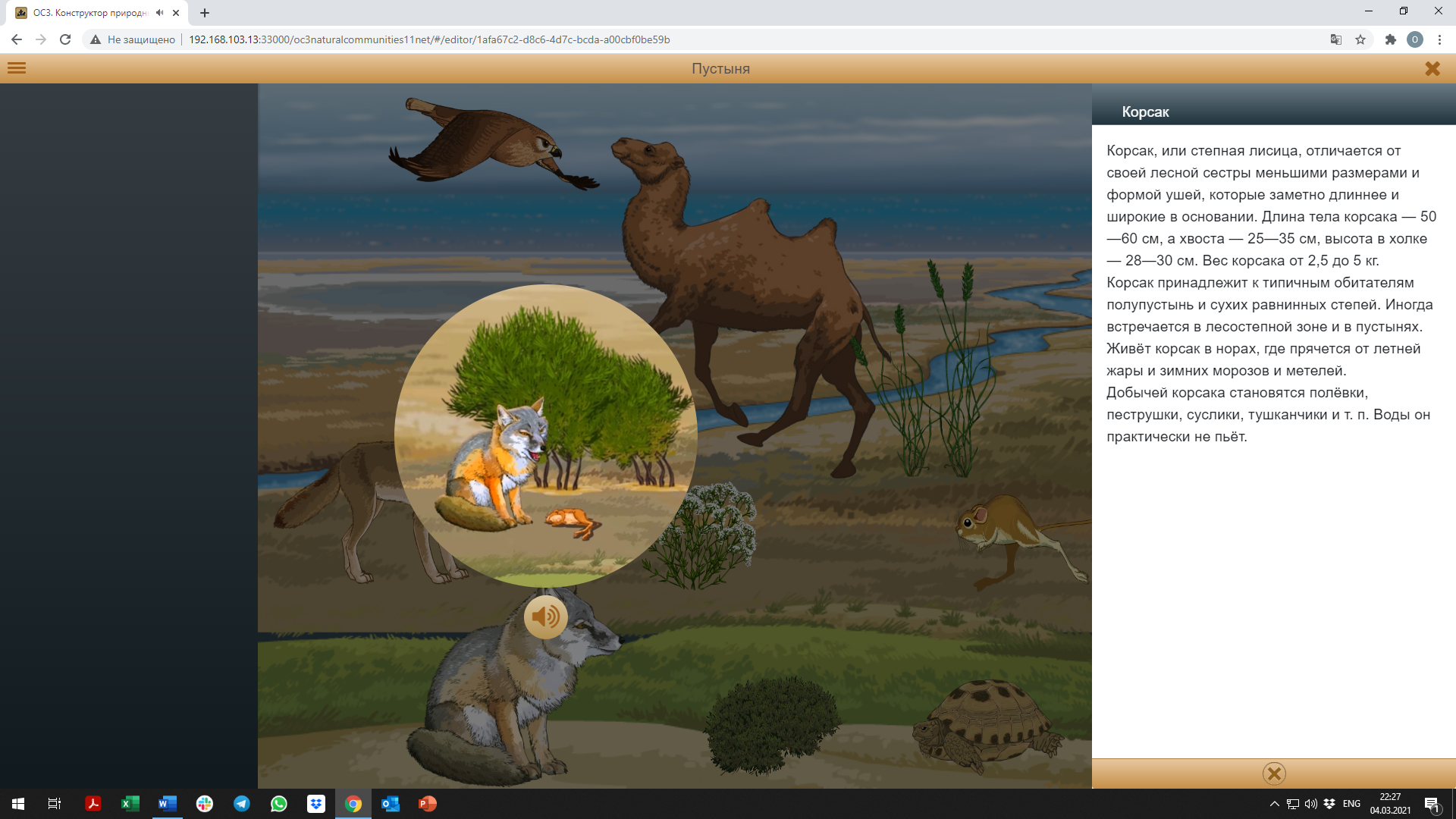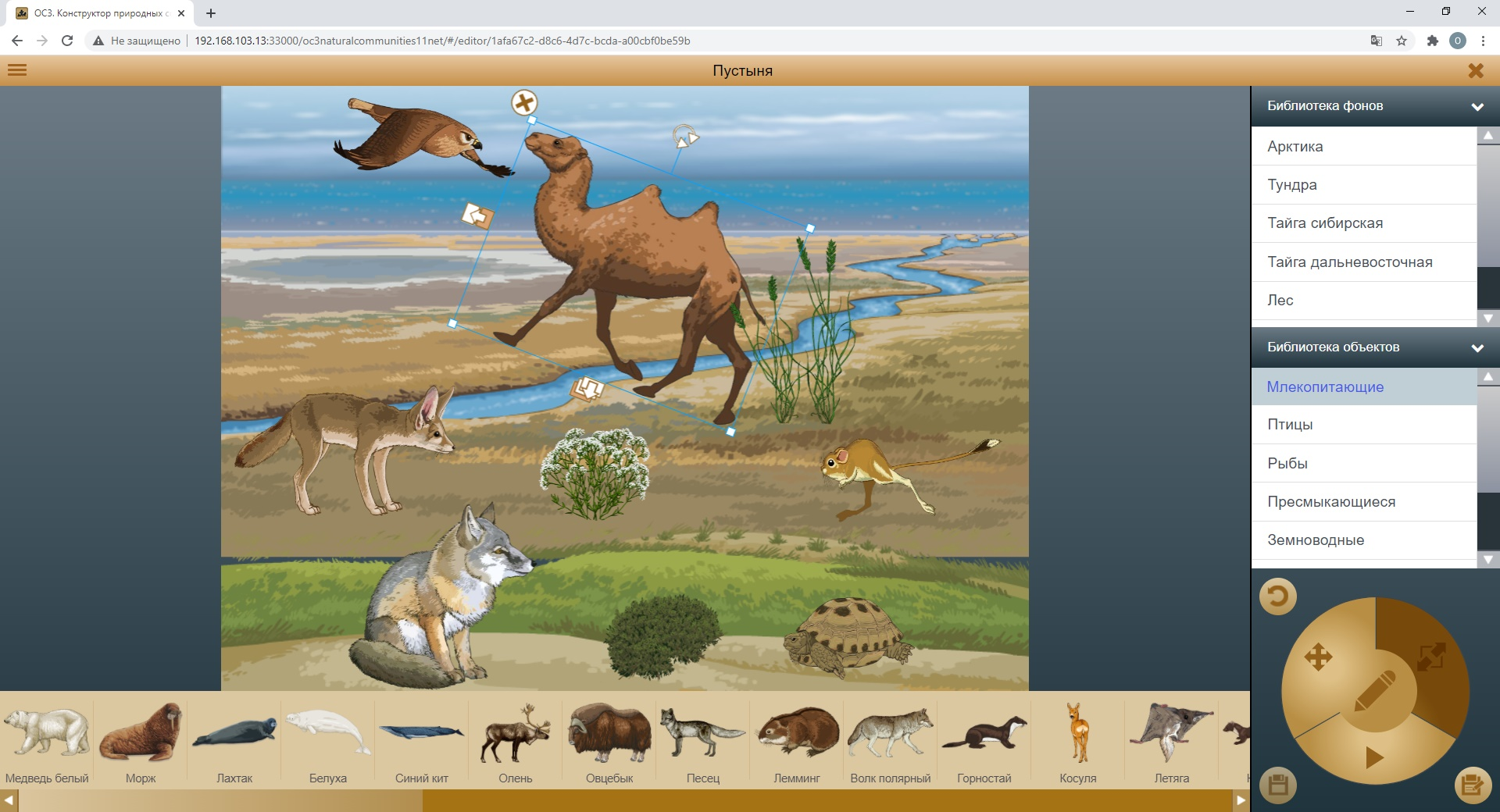 С помощью сетевой версии этого интерактивного пособия вы создадите природные сообщества из готовых видов представителей фауны, сможете добавить новые объекты и редактировать существующие. Оно поможет вам в организации проектной деятельности, проведении уроков по предметам «Окружающий мир» и «Биология». При работе с детьми дошкольного возраста – позволит в игровой форме изучить биологическое разнообразие разных природных зон России, принципы формирования и функционирования природных сообществ. Продукт позволяет организовать многопользовательскую сетевую работу. Поддерживается одновременное подключение к продукту 30 учеников.