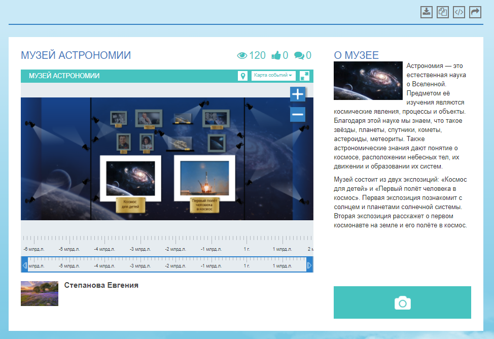 «ОСӠ. Виртуальный школьный музей (ОСӠ. ВШМ)» предоставляет прекрасную возможность немедленно приступить к решению сразу нескольких педагогических задач: создать самостоятельно или совместно с учениками экспозиции виртуального школьного музея или целый виртуальный тур по школе; организовать, в рамках проектной деятельности, совместную работу учеников школы над практическим межпредметным проектом; продемонстрировать ваши успехи на сайте школы или в социальных сетях.