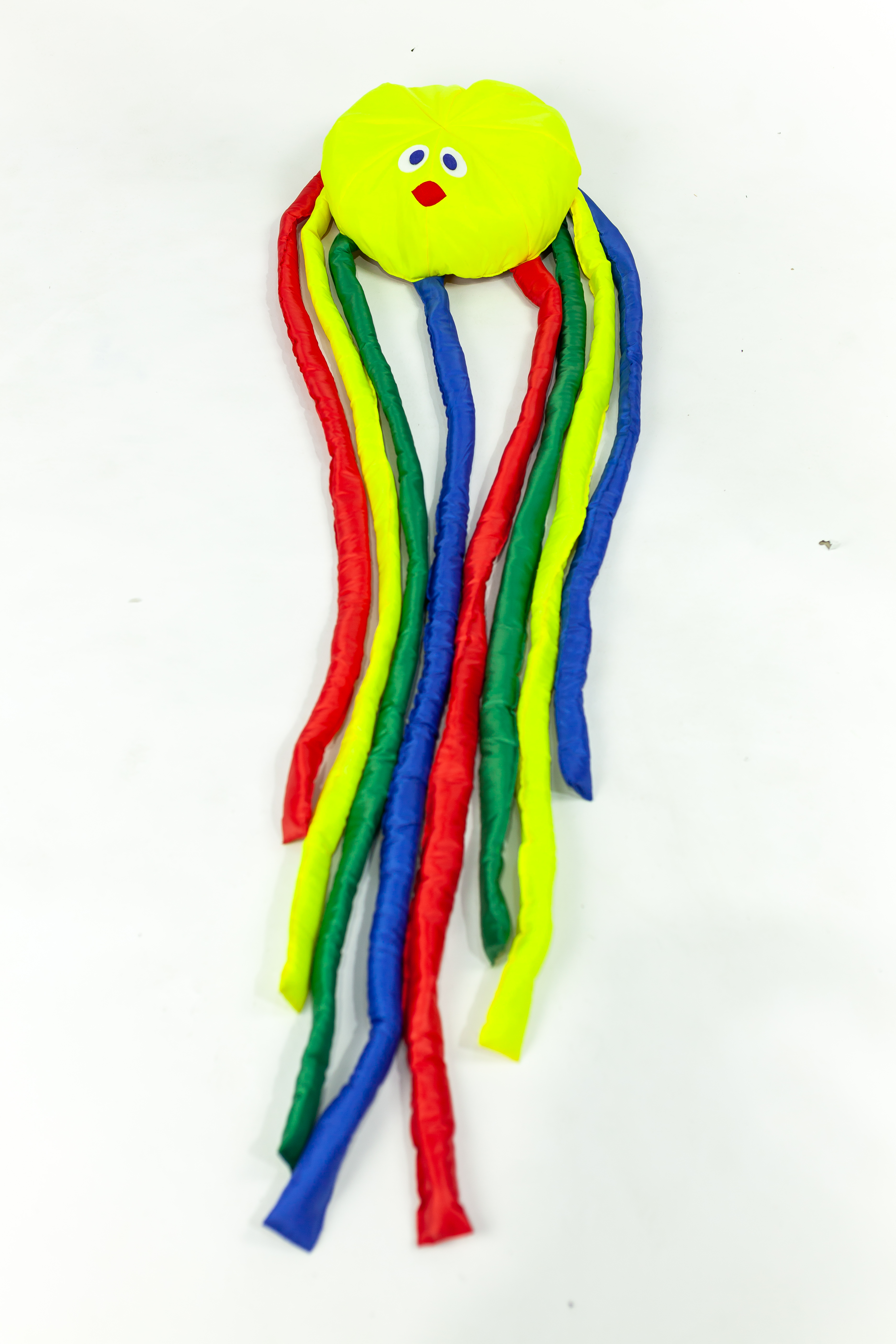 Комплектация: осьминог -  голова однотонная, снизу - противоскользящая поверхность. 8 объемных щупалец - 4-х цветов (по 2 каждого цвета) , мешок для хранения.