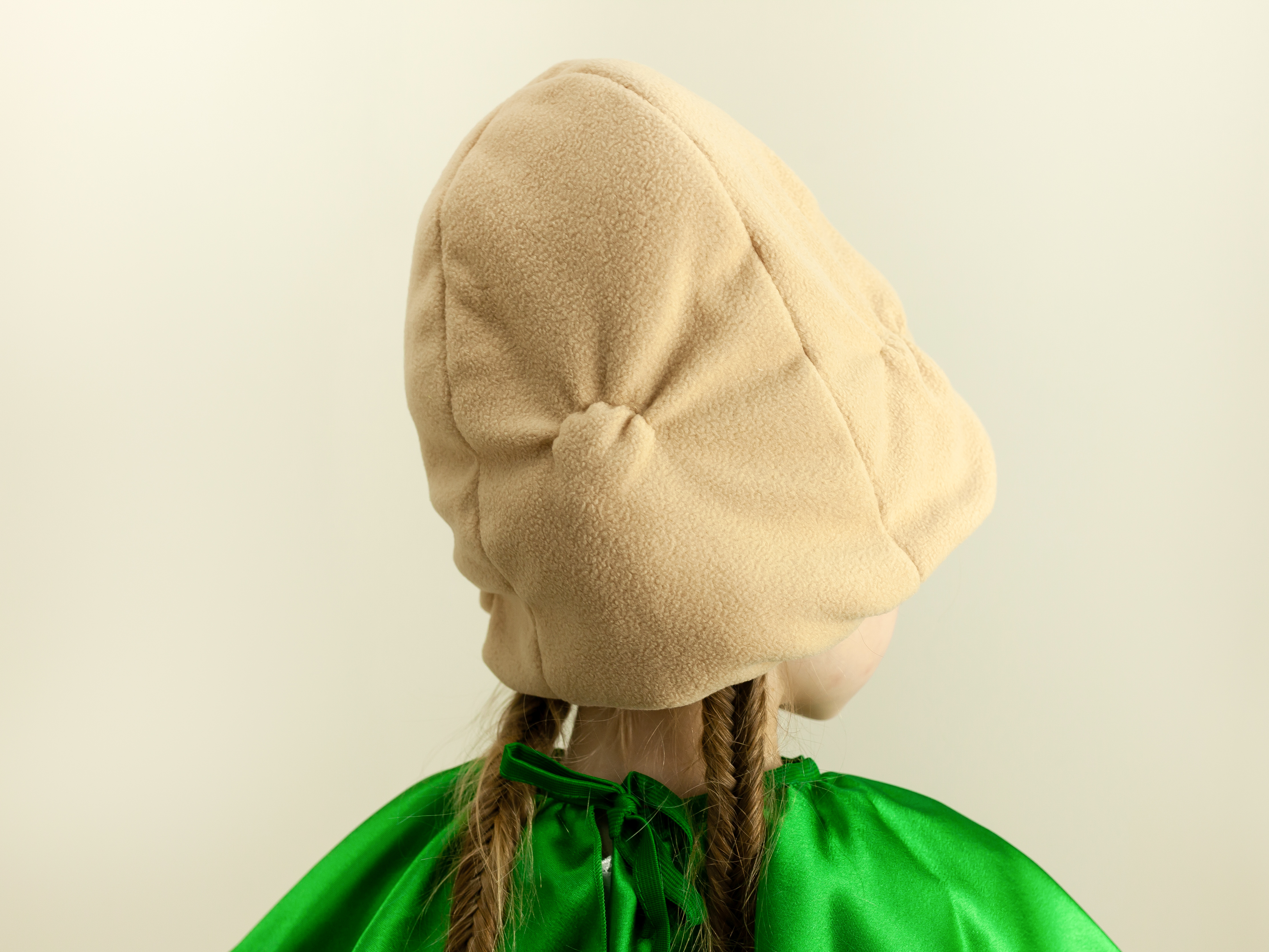 Материал основа — флис синтепон — 100% полиэстер, подклад — смесовая ткань 35% хлопка, 65% полиэстера, наполнитель синтепух. Низ головного убора собран на резинку.