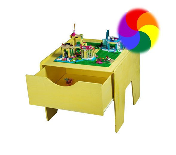 Желтый лего стол с выдвижным ящиком! Есть и место для игр и место для хранения! Цвета в ассортименте. Подходит для мелкого и крупного лего!  Сверху на крышке лего полотно для игр!  К заказу доступны различные цвета как полотен для конструирования, так и для цвета корпуса - наличие уточняйте у менеджера или укажите в комментарии к заказу. Размер полотна 40*40 Размер столешницы 52х52 см