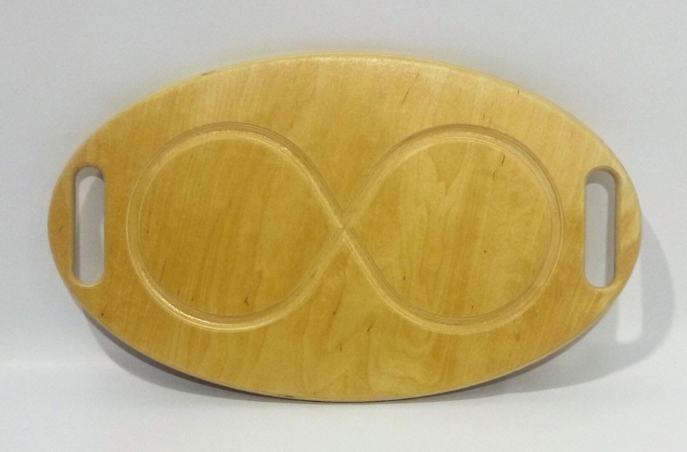 Размер 50*30 см • Тренажер «Волшебная восьмерка» Тренажер «Волшебная восьмерка» предназначен для гармонизации работы мозга, активизации процесса обучения, с помощью упражнений на тренажере можно расширить поле зрения, улучшить восприятие, мышцы глаза обучаются произвольным движениям, необходимым для построчного прослеживания при чтении, письме. Предназначен для детей от 4-х лет. Держась за боковые ручки, лабиринт можно двигать в воздухе, можно положить на стол или на пол. Высокие бортики гарантируют, что шарик не выпадет из лабиринта. Каждый лабиринт имеет свою ступень сложности. Лабиринты выполнены из высококачественного дерева. В комплект входят 3 стеклянных шарика.