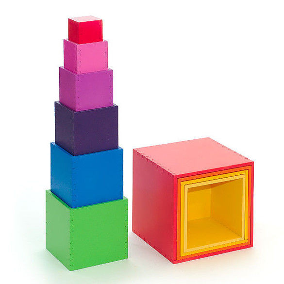 «Куб-матрешка» для юного строителя. Размеры кубов: 25, 23, 21, 19, 17, 15, 13, 11, 9, 7 см. Материал: Фанера окрашенная