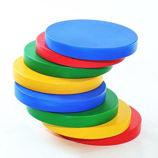 Хорошее развлечение для ребенка и важный элемент игрового мира. Диски для переступания помогают тренировать вестибулярный аппарат и координацию движений, формирует понятия цвета и формы. Размер диска 25х2 см, комплект из 8 штук.