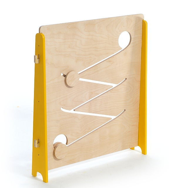 Деревяннная игровая панель с перемещающимся по желобком колесиком. Размер изделия 78х88х12 см.