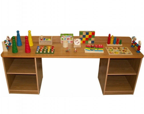 Дидактический стол пригодится для размещения на нем дидактический пособий. За таким столом могут заниматься несколько деток одновременно. Занятия с дидактическими материалами способствуют развитию у детей сенсорного воспитания, формы, величины и  цвета. Возможно исполение в разных цветовых решениях. Габаритные размеры: 1490х500х520 мм.