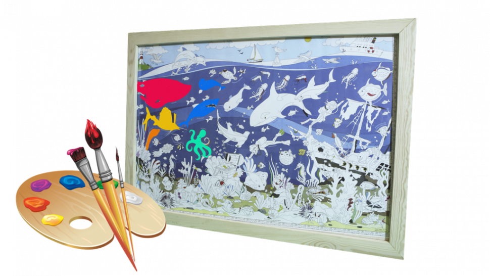 Настенная раскраска в полный рост размером 100 на 70 см.  Модуль состоит из рамы, рисунка раскраски, который можно менять и оргстекла. Ребенок с помощью специальных фломастеров разрисовывает картинку, все это можно стереть и начать заново. Сменные рисунки также можно заказать в нашем интернет-магазине.   Комплектация: рама, не бьющееся стекло, Набор фломастеров,  картинка-раскраска