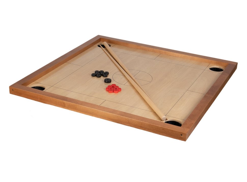 Игра Новус или морской бильярд в том виде, в котором он знаком нам, появилась в 20-веке. В неё играли английские моряки в портовых кабаках и пабах. Английские моряки для создания столов для капитанского бильярда использовали эскизы, найденные в скандинавских летописях. То есть своими корнями история игры берет начало от викингов. Бильярд, созданный моряками, называли капитанским или корабельным (Балтийский бильярд) и лишь потом игра получила название Новус. Сейчас эта игра стала национальным видом спорта в странах Балтии, так как сильно распространена именно там. В отличие от классического бильярда на игровом поле нет сукна и вместо шаров - шайбы и пешки. По размеру игровое поле гораздо меньше, что делает игру более мобильной. В процессе игры соперники стоят у противоположных сторон стола. Следует расставить восемь своих пешек в своей зоне, ближней к себе, вплотную друг к другу и плотно к бортику. Пешки располагаются от центральной линии по обе стороны по четыре с каждой стороны. Ведут игру прямыми и рикошетными ударами. Удар пешки битой, которая летит от кия, - это прямой удар. Удар пешки битой, которая летит от борта - это рикошетный удар битой от борта. Удар пешки пешкой, которая летит от другой пешки или биты - это рикошетный удар пешкой. Комплектация : игровое поле - 1 шт, пешки - 16 шт, шайбы - 2 шт, кии - 2 штРазмеры : 110х110 см, вес 17 кгМатериалы : массив березы, фанера 15 мм, покрытие - морилка, акриловый лак Видео: