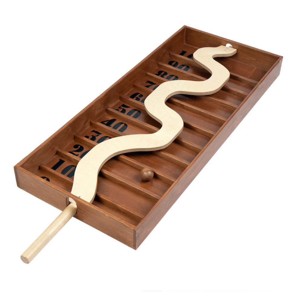 Увлекательная игра на ловкость и координацию также помогает развивать мелкую моторику, глазомер и тактическое мышление.Количество игроков как и их возраст не ограничены.Цель каждого игрока набрать максимальное количество очков. Количество попыток обговаривается до начала игры. По очереди каждый игрок, управляя извилистой дорожкой с помощью рукоятки, пытается провести шарик как можно дальше. Под дорожкой игровое поле разделено на 11 секторов, на которых написаны цифры кратно 10 от 0 до 100. Игрок зарабатывает столько баллов, сколько написано в ячейке куда упадет шарик. По завершению всех попыток все баллы суммируются и определяется победитель.Комплектация : игровое поле - 1 шт, шарик - 1 штРазмеры : 122х40 смМатериалы : массив дерева, фанера, покрытие - морилка и акриловый лак