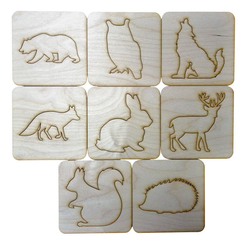 Комплект трафаретов "Дикие животные  " ??   Размер трафарета 8см*8см  Материал: березовая фанера. Фигуры предназначены как для занятий как на бумаге, так и на световом столе. Благодаря внутренним и внешним фигурам, можно создавать картины,  развивая фантазию, мышление и воображение ребенка. Рисуя песком фигуры можно обводить как по внутренней стороне каждой детали, так и по внешней, как пальчиком, так и кисточкой, используя методы песочного рисования: насыпанием песка из кулачка, рисованием по присыпанному фону.