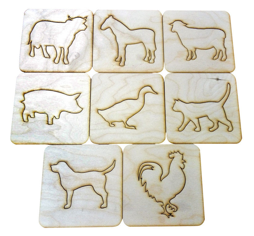Комплект трафаретов "Домашние животные  " ??   Размер трафарета 8см*8см  Материал: березовая фанера. Фигуры предназначены как для занятий как на бумаге, так и на световом столе. Благодаря внутренним и внешним фигурам, можно создавать картины,  развивая фантазию, мышление и воображение ребенка. Рисуя песком фигуры можно обводить как по внутренней стороне каждой детали, так и по внешней, как пальчиком, так и кисточкой, используя методы песочного рисования: насыпанием песка из кулачка, рисованием по присыпанному фону.