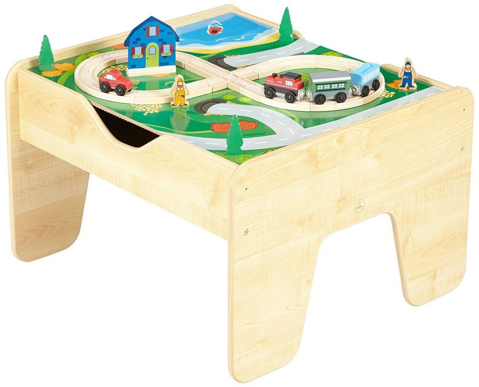 Стол-подставка для деревянной железной дороги - удобное дополнение к детским играм. На нем будет удобно разместить и железную дорогу, и целый игрушечный городок, или просто играть в настольные игры и заниматься творчеством (рисовать, лепить, мастерить). Бортики по краям не дадут мелким игрушкам рассыпаться и потеряться.  Особенности: - Столик выполнен из высококачественной фанеры - Бортики и ножки можно выбрать разного цвета, поверхность цветная - с изображением ландшафта - Изображение на столешнице может немного отличаться от представленного на картинке - это зависит от серии выпуска столика - По бокам столика есть небольшие бортики - У него четыре ножки - Стол продается без игрушек - Высота столика 37 см В комплекте: столик-подставка Размеры: длина стола - 80 см, ширина - 65 см, высота - 37 см