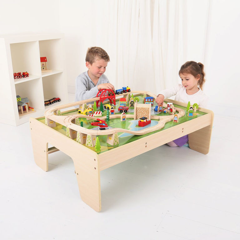 120 х 84 х 41 см Стол-подставка для деревянной железной дороги - удобное дополнение к детским играм. На нем будет удобно разместить и железную дорогу, и целый игрушечный городок, или просто играть в настольные игры и заниматься творчеством (рисовать, лепить, мастерить). Бортики по краям не дадут мелким игрушкам рассыпаться и потеряться. Особенности: - Столик выполнен из МДФ - Бортики и ножки можно выбрать разного цвета, поверхность цветная - с изображением ландшафта - Изображение на столешнице может немного отличаться от представленного на картинке - это зависит от серии выпуска столика - По бокам столика есть небольшие бортики - У него четыре ножки - Стол продается без игрушек - Высота столика 41 см В комплекте: столик-подставка Размеры: длина стола - 120 см, ширина - 84 см, высота - 41см