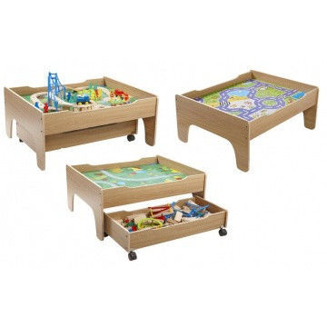 Стол-подставка для деревянной железной дороги - удобное дополнение к детским играм. На нем будет удобно разместить и железную дорогу, и целый игрушечный городок, или просто играть в настольные игры и заниматься творчеством (рисовать, лепить, мастерить). Бортики по краям не дадут мелким игрушкам рассыпаться и потеряться. Особенности: - Столик выполнен из МДФ - Бортики и ножки можно выбрать разного цвета, поверхность цветная - с изображением ландшафта - Изображение на столешнице может немного отличаться от представленного на картинке - это зависит от серии выпуска столика - По бокам столика есть небольшие бортики - У него четыре ножки - Стол продается без игрушек - Высота столика 37 см В комплекте: столик-подставка Размеры: длина стола - 80 см, ширина - 65 см, высота - 37 см Размеры ящика: длина 70 см ,ширина 40 см ,высота 15 см.