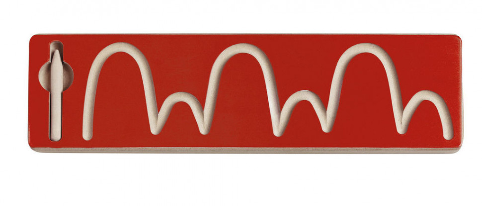 Дерево. В комплекте доска размером не менее 10х35х1,4 см с фигурными прорезями повторяющихся элементов прямоугольных очертаний в виде "мосты", стилус. На каждой доске слева расположено углубление для хранения стилуса. Стилус должен иметь один конец зауженный, но не острый.  Способствует подготовке руки к рисованию и письму, развитию моторики кисти руки, зрительно-моторной координации, наблюдательности, пространственного мышления, зрительного восприятия.