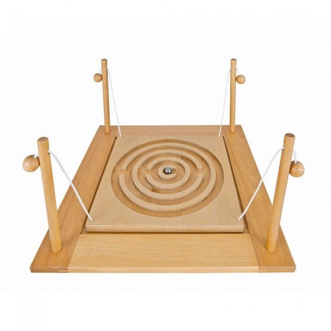 Игра рассчитана на команду от 2х до 4х человек. Игроки с помощью шарика и нитки управляют лабиринтом и перемещают шарик по траектории. Работа в команде сплачивает коллектив любого возраста и позволяет проявить лидерские качества. Комплектация : игровое поле - 1 шт, шарики металлические - 2 шт Материалы : массив дерева, металл, веревка Размер: 41х41х24 см