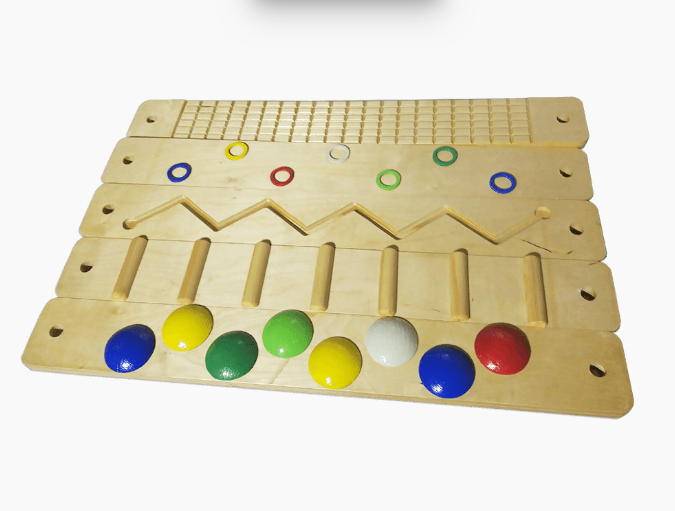 Тактильно-развивающий комплекс состоит из 11 деревянных модулей, на каждом из которых нанесен специальный тактильный слой: ворс, ковер, бортики, пластиковые элементы и так далее. Принцип действия комплекса состоит в соединении модулей между собой, таким образом получая подобие тактильной дорожки, хождение по которой учит держать равновесие. Нанесенные фактуры на модули способствуют развитию тактильных ощущений и сенсорных навыков. Покрытие комплекса: ворс; ковер; деревянные бортики; пластиковые колечки; углубленная змейка; ребристые квадратики; искусственная трава; углубленные фигурки; шканты; тактильная резина; разноцветные круги. Комплект состоит из 11 модулей. Размер каждого модуля составляет - длина 90 см., ширина 12 см., высота 1,8 см. Материал изготовления - фанера 20 мм, покрытая лаком. Возраст использования от 3-х лет Размеры 90 × 12 × 1.8 см